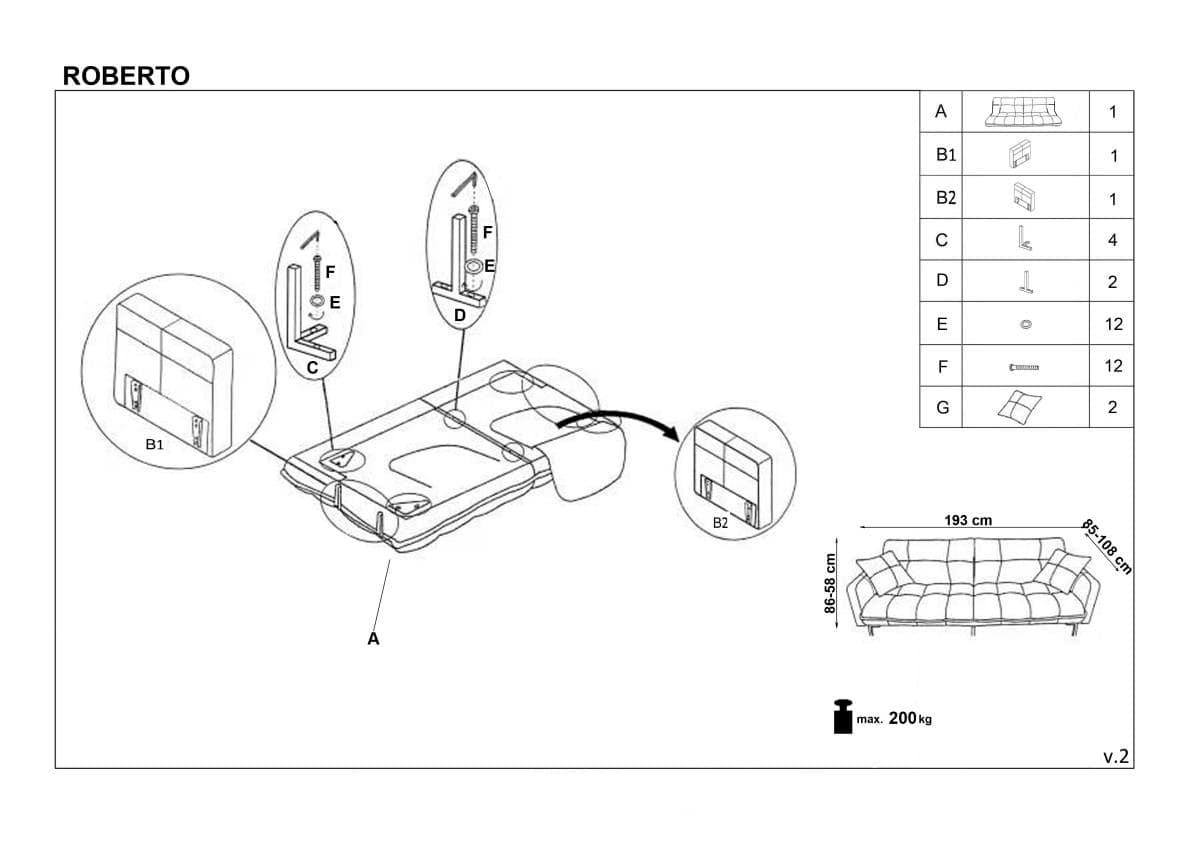 : ткань / Вес, кг: 40 / Высота (см): 86-58 / Гарантия, мес.: 12 / Глубина (см): 85 / Количество коробок: 1 / Материал каркаса: металл / Материал сидения: ткань / Необходимость сборки: да / Размер упаковки 1: 1,08/0,4/0,9 / Страна производитель: Китай / Цвет: серый / Ширина (см): 193