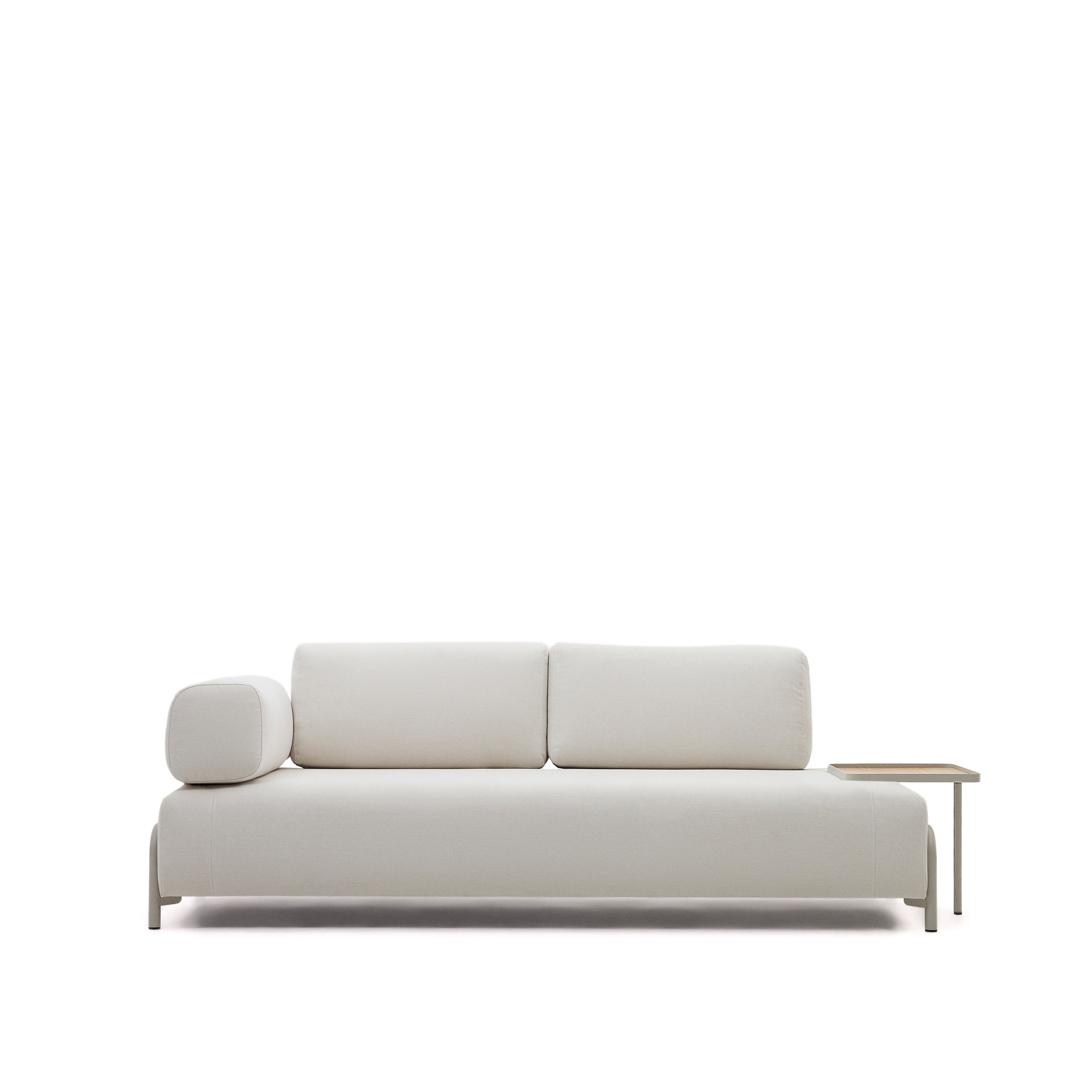 Диван La Forma (ех Julia Grup) Compo 3-х местный диван из бежевой синели и серого металла с большим подносом 232 см арт. 178064