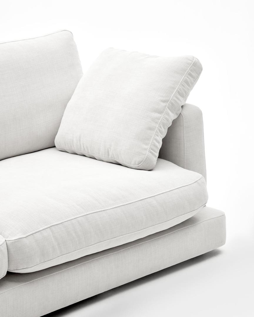 Диван Gala от фабрики La Forma (ex Julia Grup) – бескомпромиссный комфорт и габариты. Диван Gala сделает вашу гостиную центром притяжения. Впечатляющие габариты и запредельный комфорт – две главные особенности этой модели Светлый цвет обивки защищен от пятен, поэтому вам не стоит беспокоиться о случайно пролитых напитках. Сделайте свою обстановку светлой и современной. Пусть для отдыха будет много места. Диван имеет каркасную конструкцию из сосновой древесины. Каркас обшит синтетическим наполнителем и обтянут плотной износостойкой тканью. Материал пропитан защитой от пятен, обладает высокой износостойкостью, прочностью на разрыв. Цвет обивки на ваш выбор – бежевый или белый. Диван дополнен подушками со съемными чехлами. Чехлы можно стирать в машинке на деликатном режиме. Наполнитель – синтетическая пена с эффектом перьевого пуха. Она не впитывает запахи, обеспечивает комфорт и удобство. Диван установлен на деревянных ножках с накладками для защиты от повреждений. В коллекции представлено две модели – для размещения трех и четырех человек. Максимальный вес нагрузки – 300 или 450 кг. Размеры: ширина – 210/300 см, высота – 87/87 см, глубина – 193/193 см Вес – 108/116 кг. Возможно потребуется минимальная сборка. Инструкция и крепеж включены в комплектацию. В коллекции Gala также представлены кушетка и пуфик