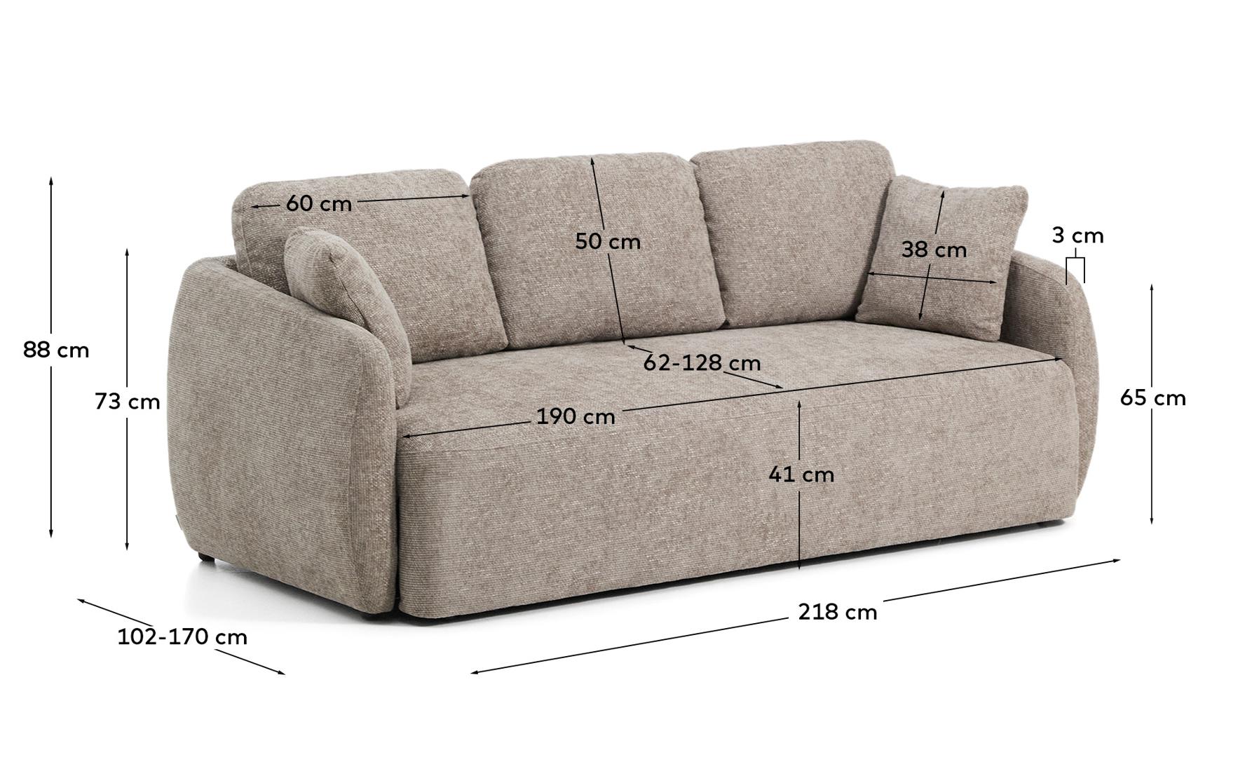 Диван La Forma (ех Julia Grup) Трехместный диван-кровать Laira из бежевой синели, 218 см арт. 453041