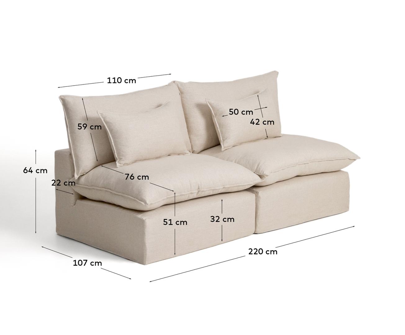 Диван La Forma (ех Julia Grup) Модульный трехместный диван Anarela из бежевого льна и вискозы со съемным чехлом, 220 см арт. 483125
