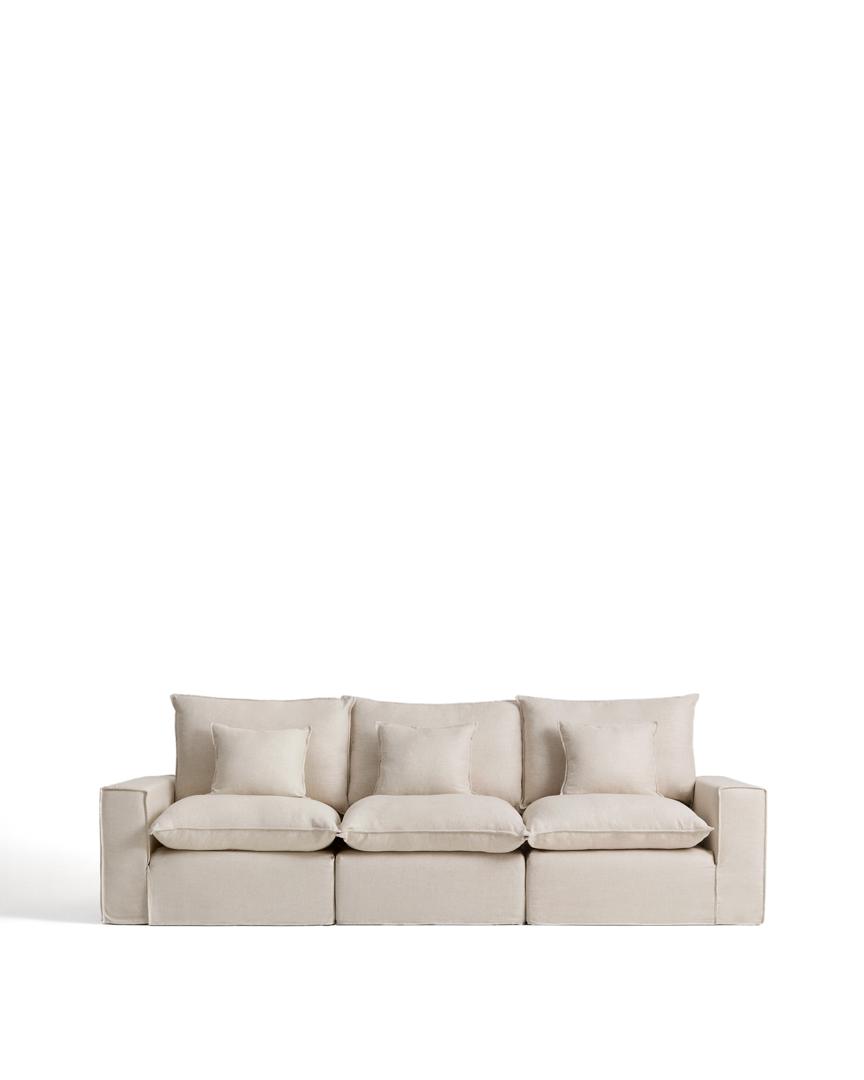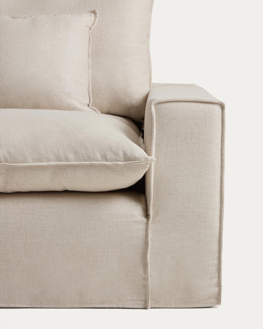 Диван La Forma (ех Julia Grup) Модульный трехместный диван Anarela из бежевого льна и вискозы со съемным чехлом, 310 см арт. 483131
