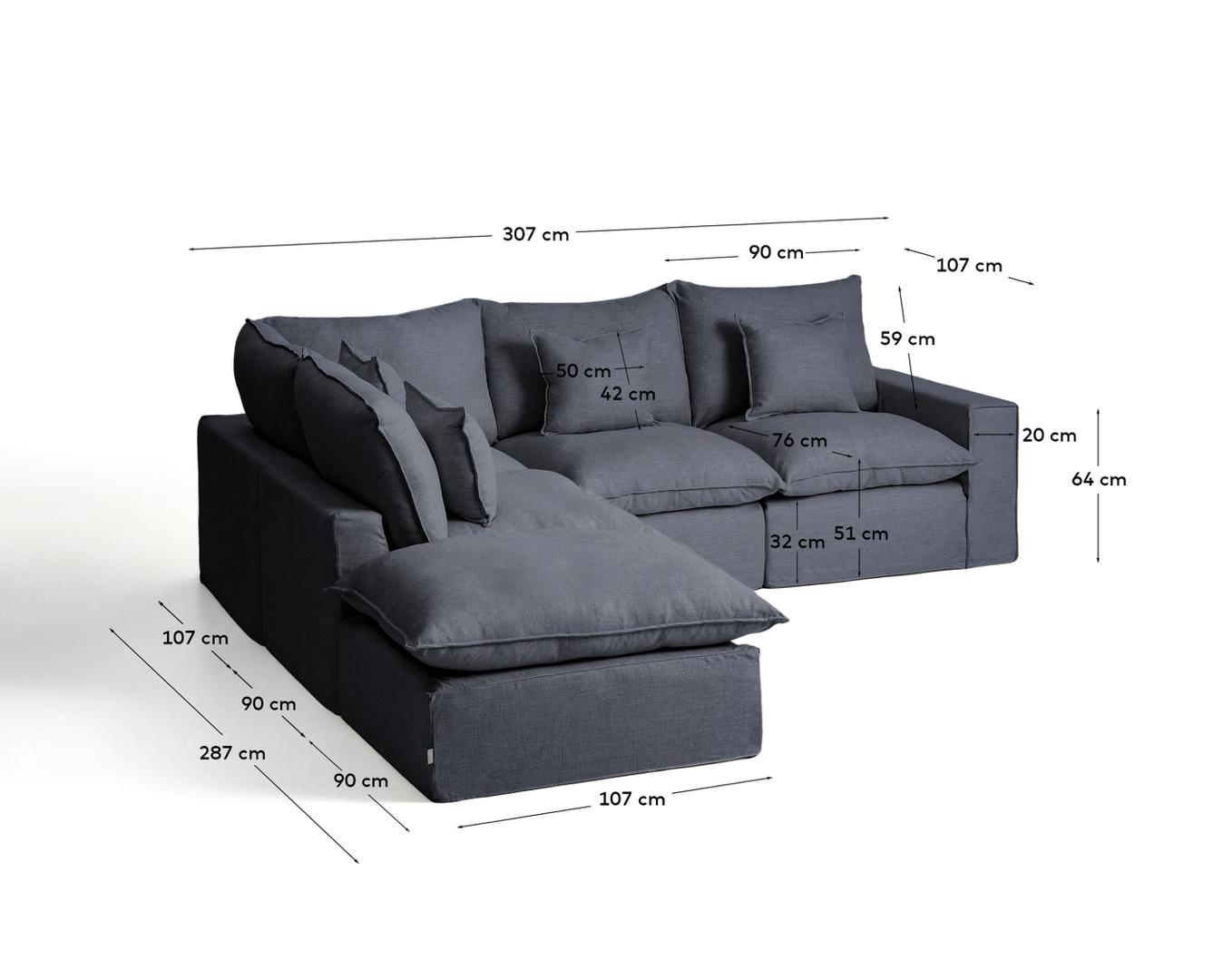 Диван La Forma (ех Julia Grup) Угловой диван Anarela на 4 места со съемными чехлами из темно-серого льна и вискозы, 287 x 307 арт. 483165
