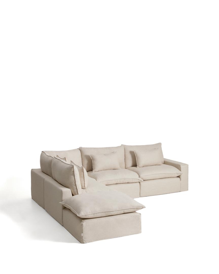 Диван La Forma (ех Julia Grup) Угловой модульный диван Anarela бежевый из льна и вискозы со съемным чехлом, 307 x 347 арт. 483159