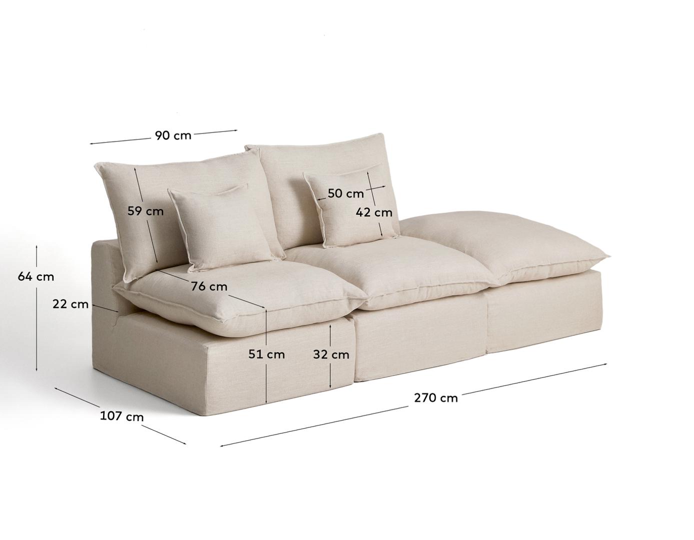 Диван La Forma (ех Julia Grup) Модульный диван Anarela из бежевого льна и вискозы с торцевым модулем и съемным чехлом, 270 см арт. 483139
