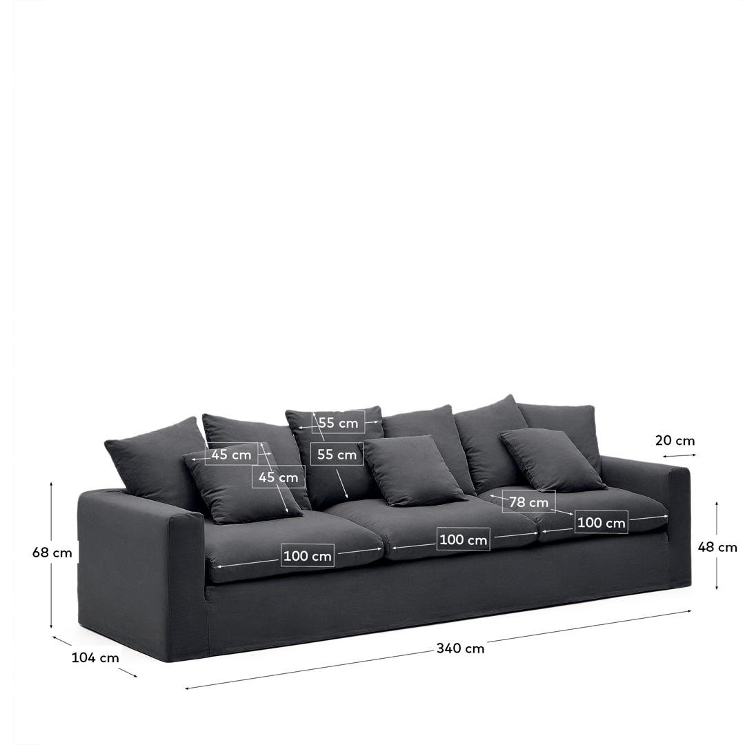 Диван La Forma (ех Julia Grup) Nora Диван 4-х местный со съемным чехлом серо-антрацитовый из льна и хлопка арт. 192949