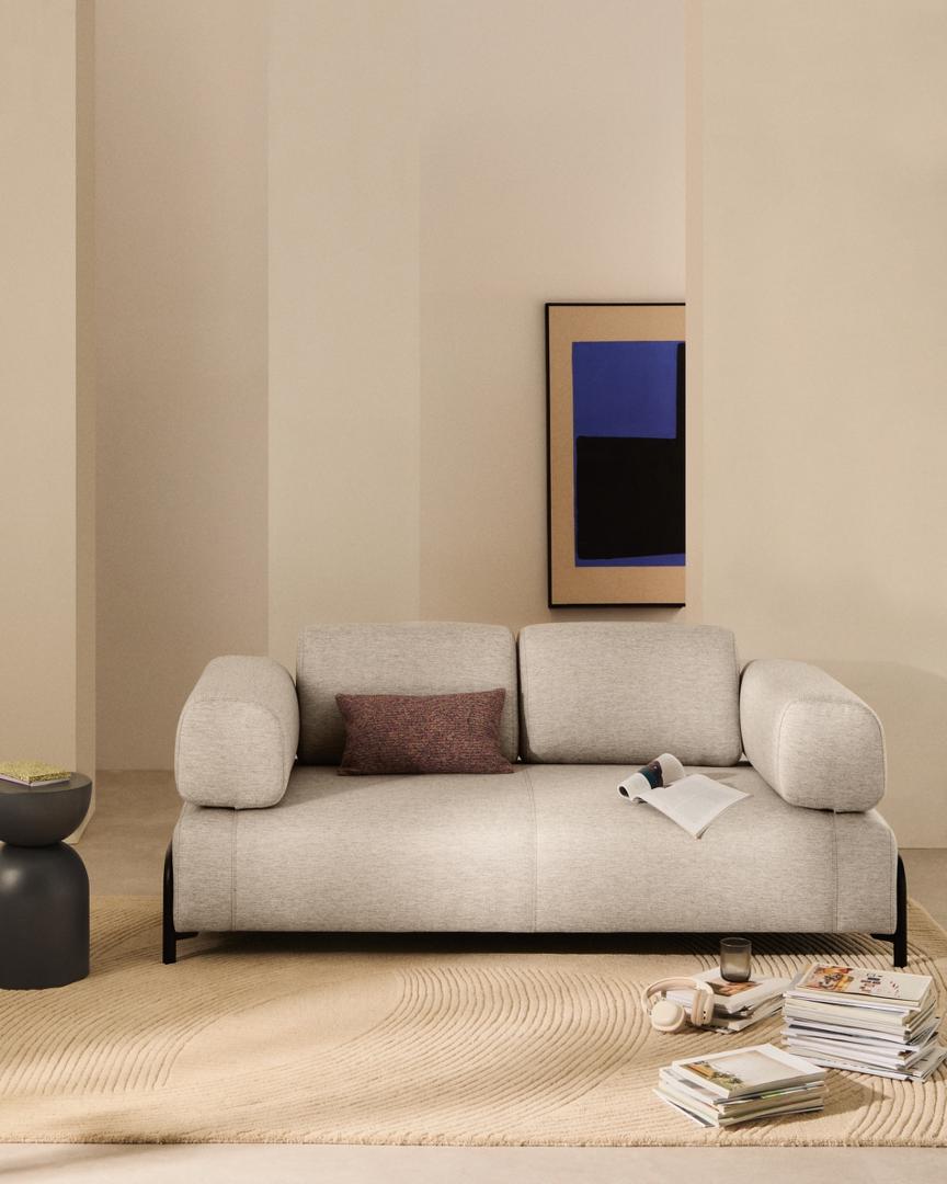Диван La Forma (ех Julia Grup) 2-местный диван Compo серо-бежевого цвета с чёрным металлическим каркасом, 200 см арт. 421089