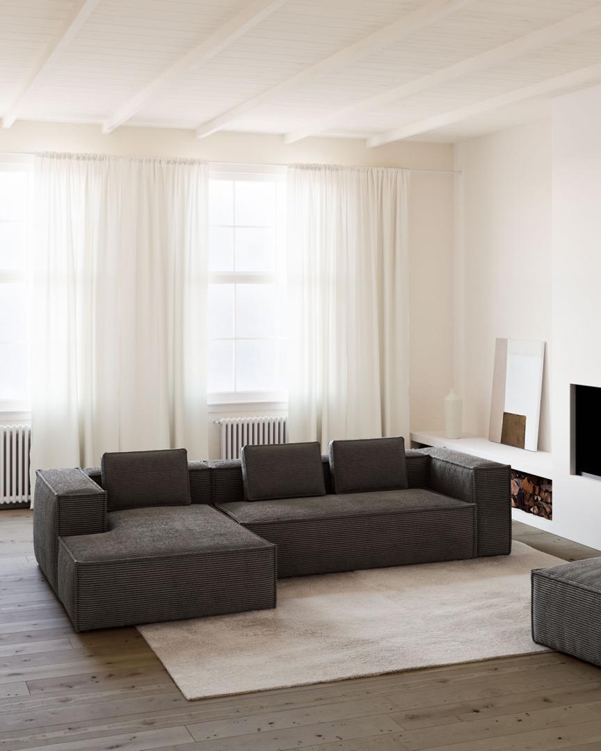 Диван La Forma (ех Julia Grup) Диван 3х местный Blok с левым шезлонгом серый вельвет арт. 072988