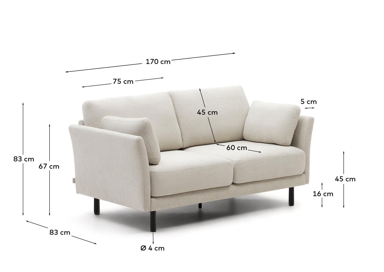 Диван La Forma (ех Julia Grup) Gilma 2-местный диван бежевый с ножками в черной отделке 170 см арт. 164063