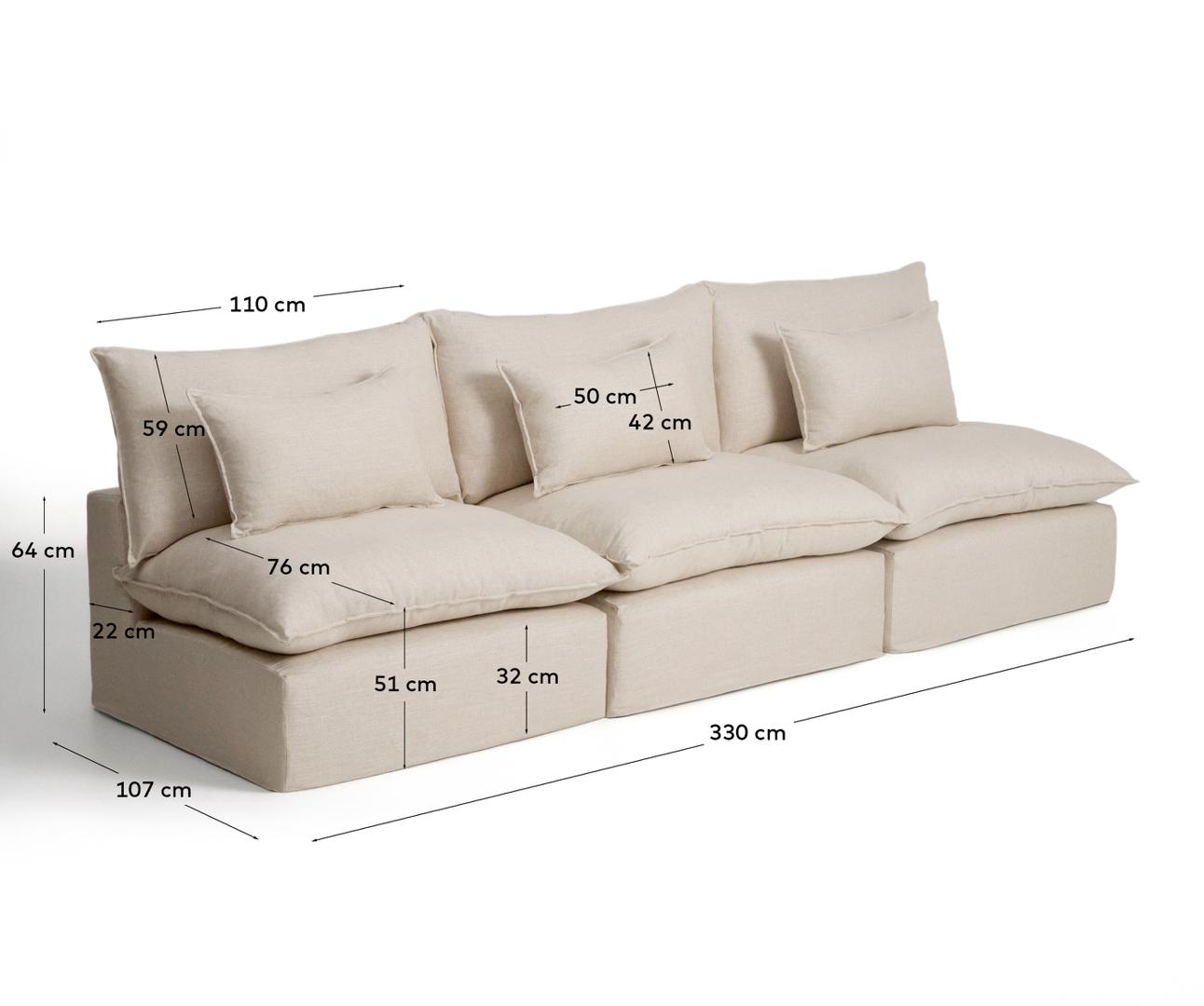 Диван La Forma (ех Julia Grup) Модульный пятиместный диван Anarela из бежевого льна и вискозы со съемным чехлом, 330 см арт. 483167