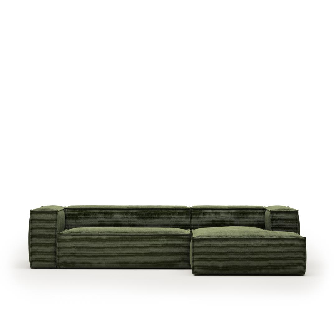 Диван La Forma (ех Julia Grup) 3-х местный диван Blok с правым шезлонгом в зеленом толстом вельвете 300 см арт. 109683