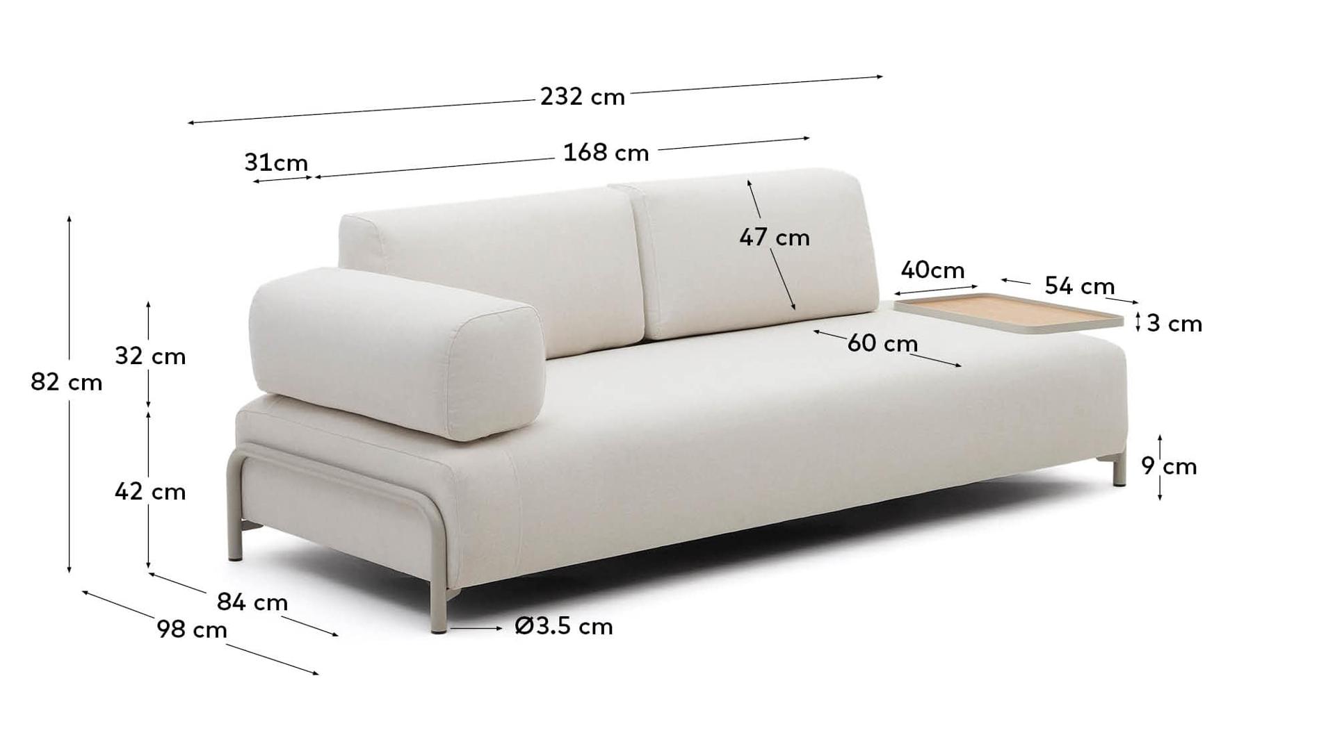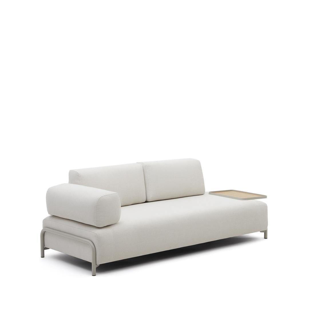 Диван La Forma (ех Julia Grup) Compo 3-х местный диван из бежевой синели и серого металла с большим подносом 232 см арт. 178064