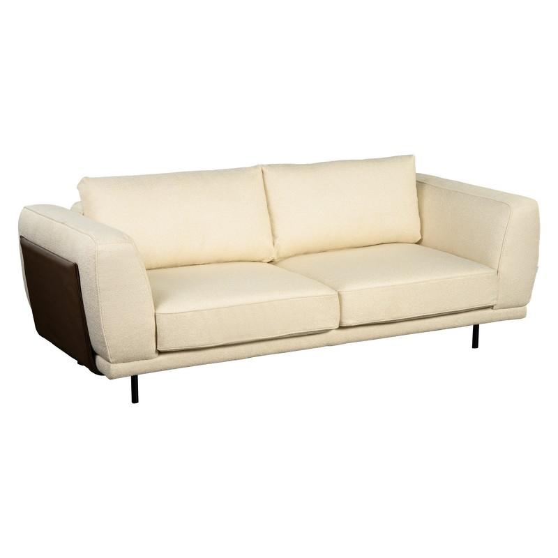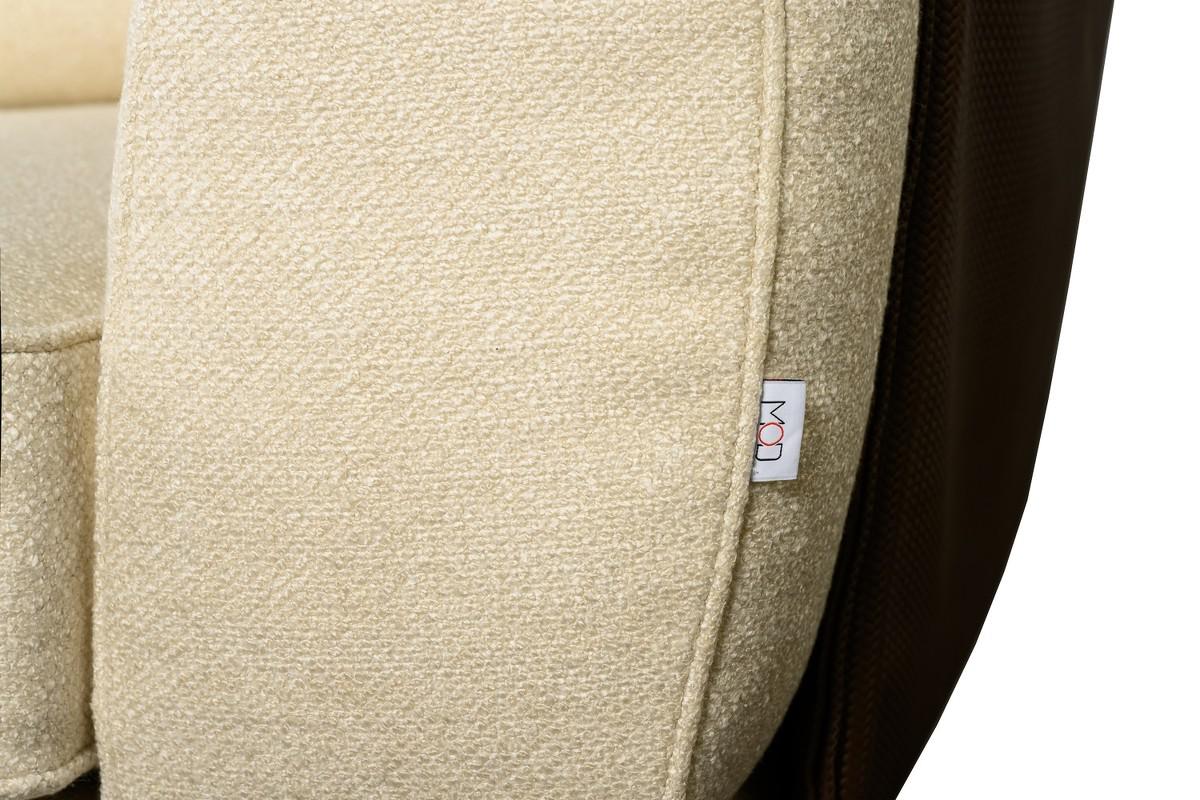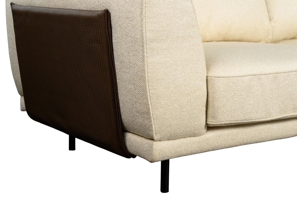 Диван Amulet Day от бренда MOD Interiors — это сочетание актуального европейского дизайна и комфорта, созданное для тех, кто ценит стиль и функциональность в каждом элементе интерьера. Отлично подойдет для меблировки квартиры в скандинавском стиле. Ножки из черного металла, обивка по бокам (коричневая зона) в натуральной коже. Основная светлая кремовая ткань. Каркас изготовлен из твердой европейской сосны. Подушки сиденья с наполнителем Memory — из ППУ холодной заливки и ППУ с эффектом памяти. Подушки спинки с наполнением из натурального пера и шарового силиконизированного волокна. Комфорт CM (Memory foam).