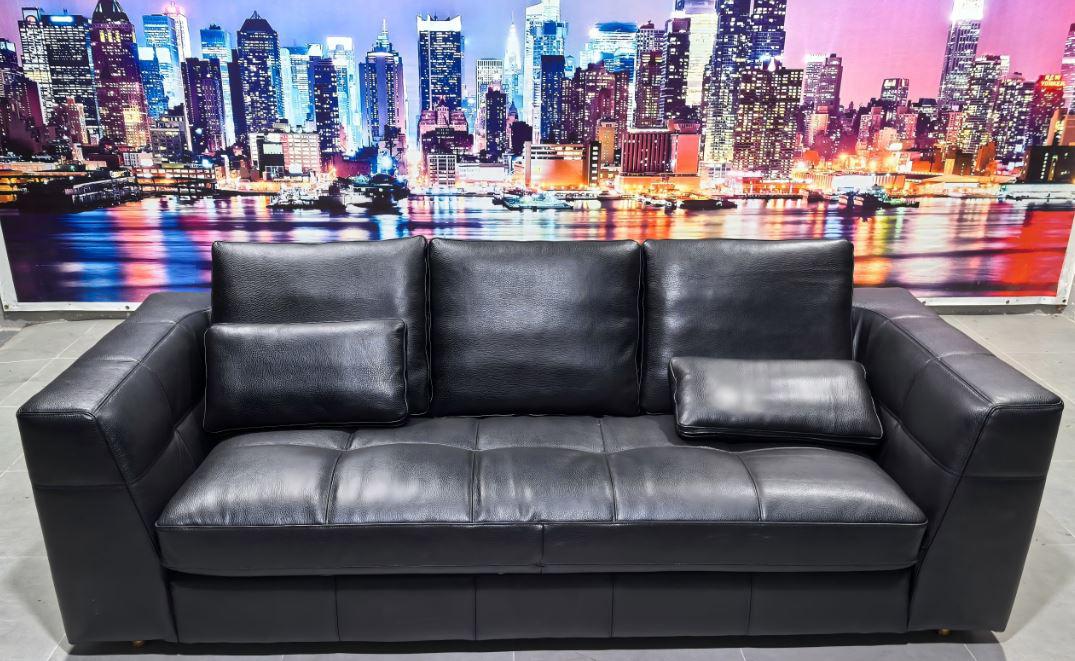 Интересный вариант дивана в современном стиле. Каркас дивана, как и его ножки с основанием изготовлены из дерева. Диван выглядит очень элегантно и стильно и несомненно сумеет не только гармонично вписаться в интерьер вашего дома, но и вполне заслуженно стать его украшением. Исполнение как на второй фотографии - кожа EMOTION 1575 NERO
