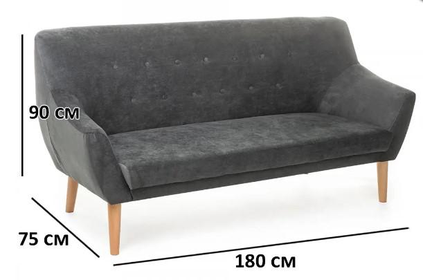 Вес, кг: 18 / Высота (см): 90 / Гарантия, мес.: 12 / Глубина (см): 75 / Глубина сиденья (см): 55 / Количество коробок: 1 / Материал каркаса: дерево / Материал сидения: ткань / Необходимость сборки: да / Размер упаковки 1: 0,66/1,8/0,5 / Страна производитель: Польша / Цвет: серый / Ширина (см): 180