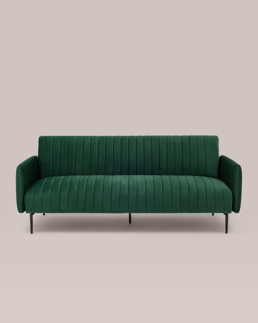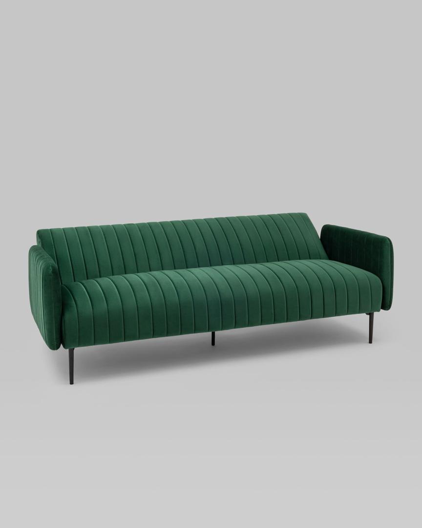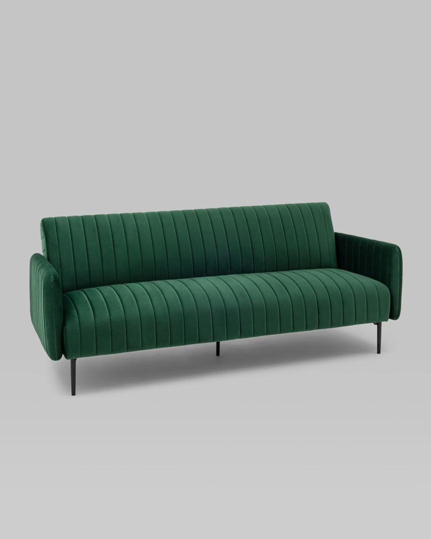 Диван прямой с подлокотниками Дрезден велюр зелёный раскладной ножки венге металл