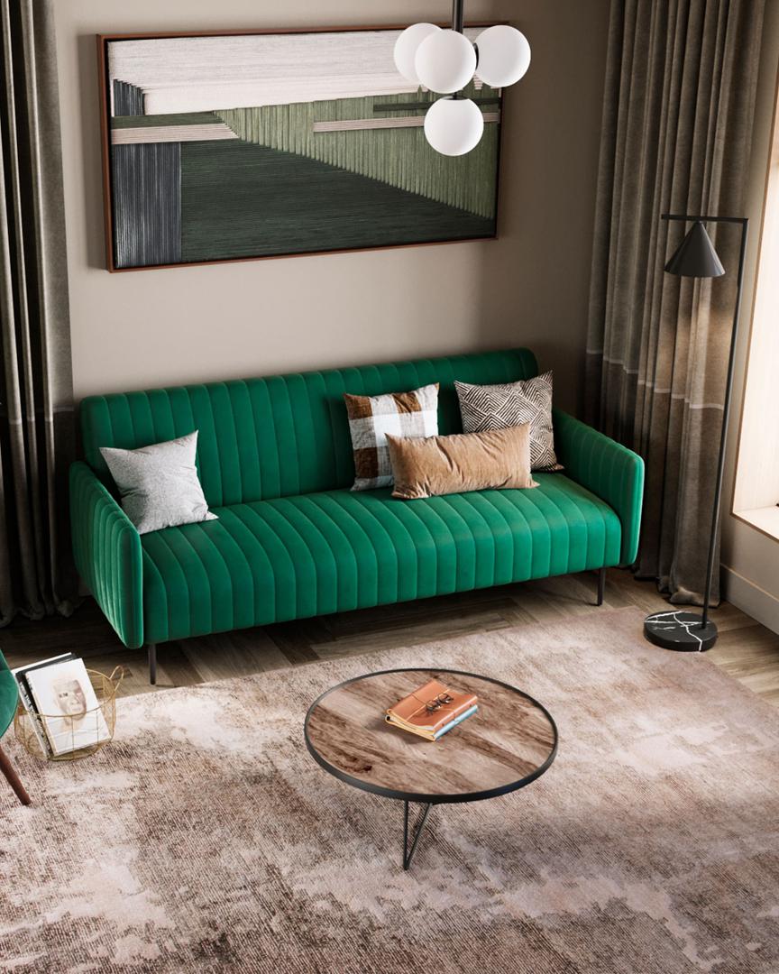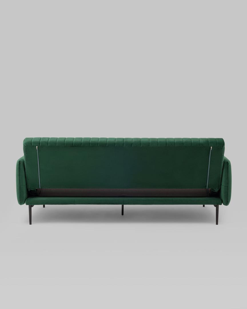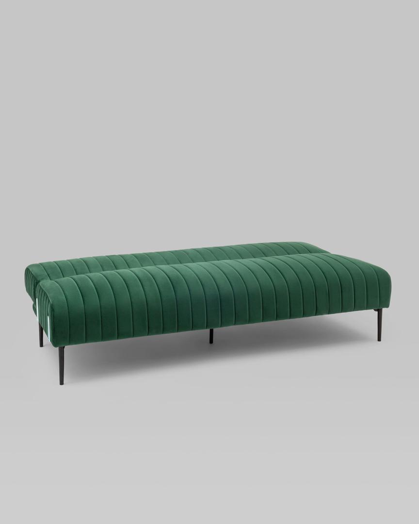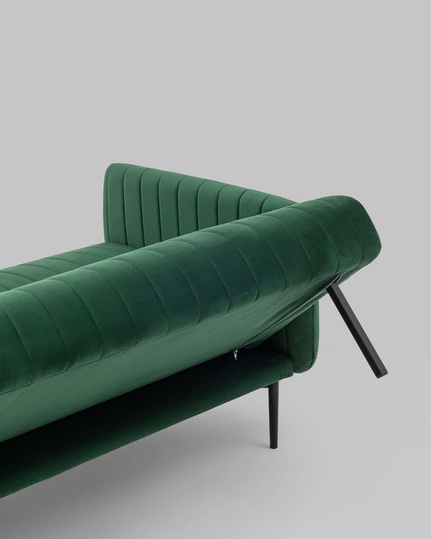 Диван прямой с подлокотниками Дрезден велюр зелёный раскладной ножки венге металл