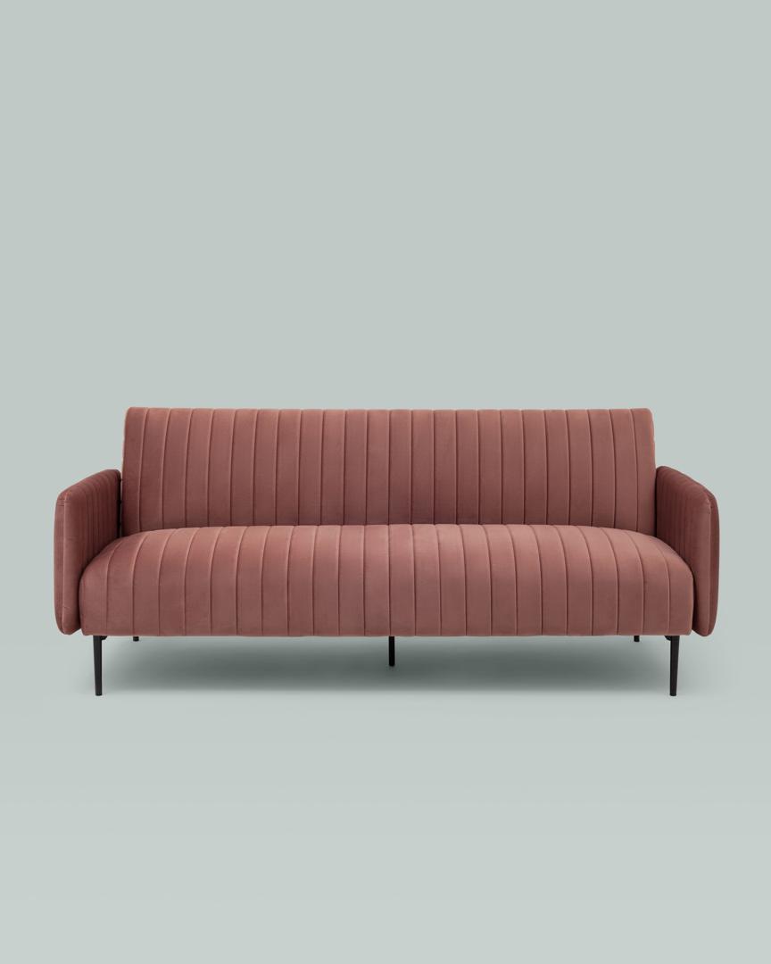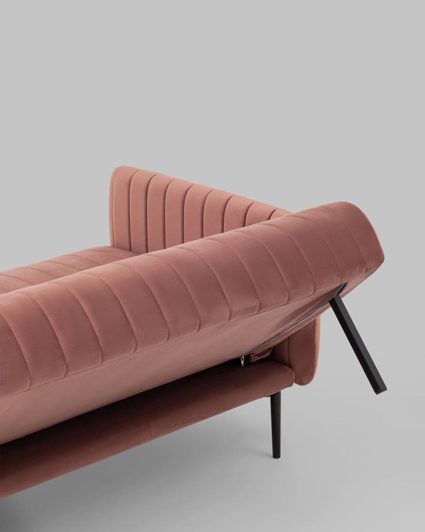 Диван прямой с подлокотниками Дрезден велюр пыльно-розовый раскладной ножки венге металл