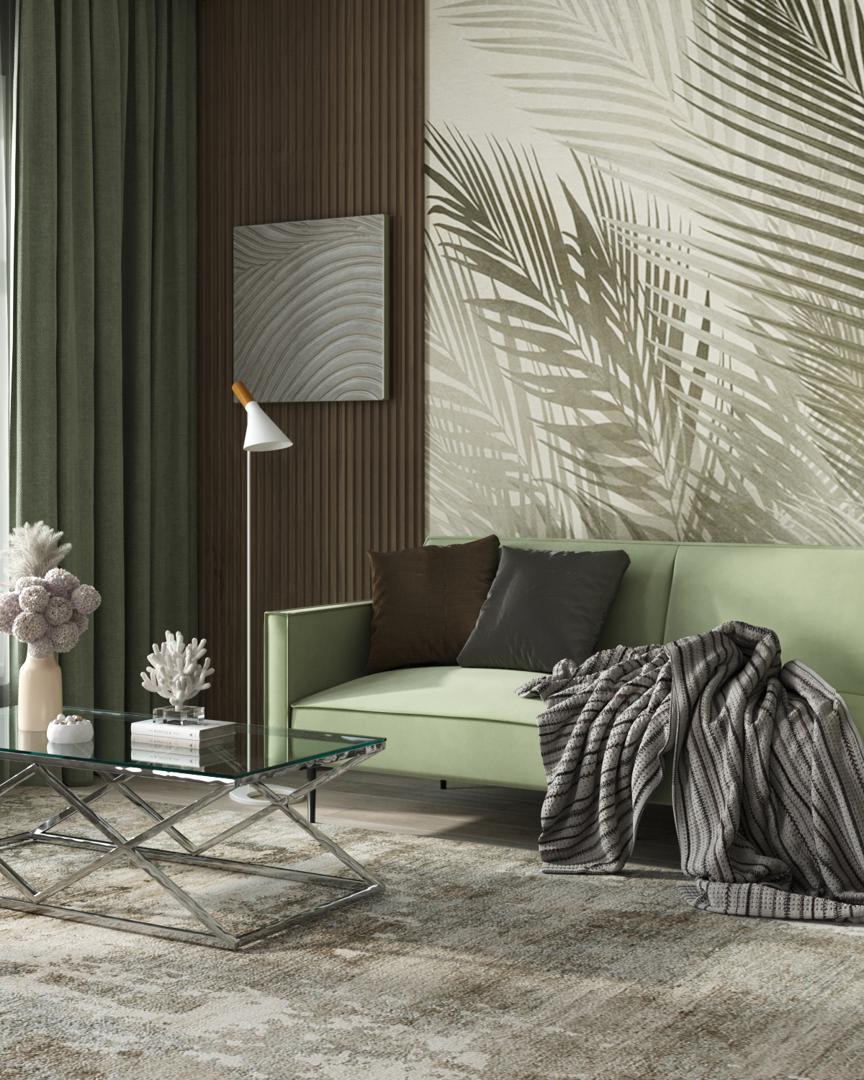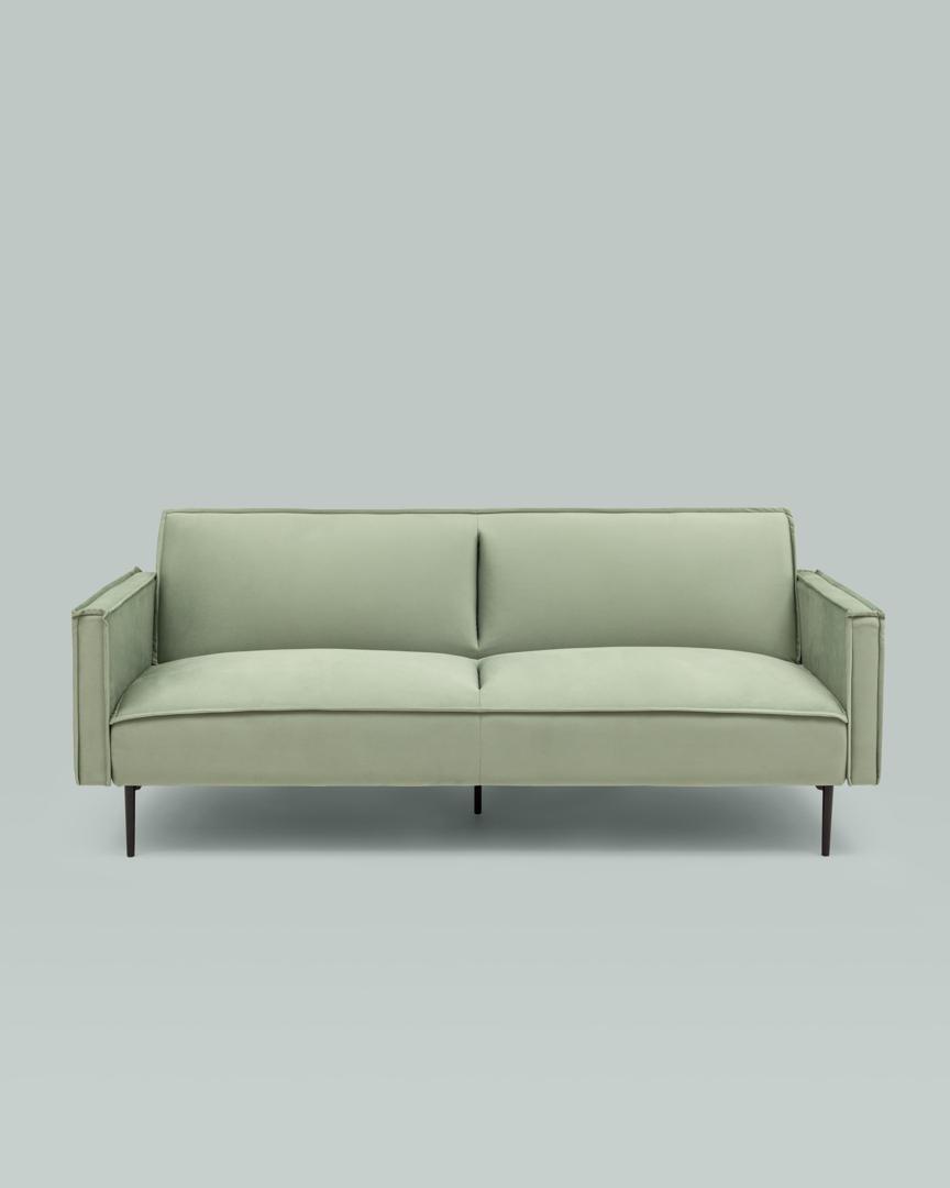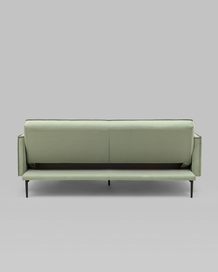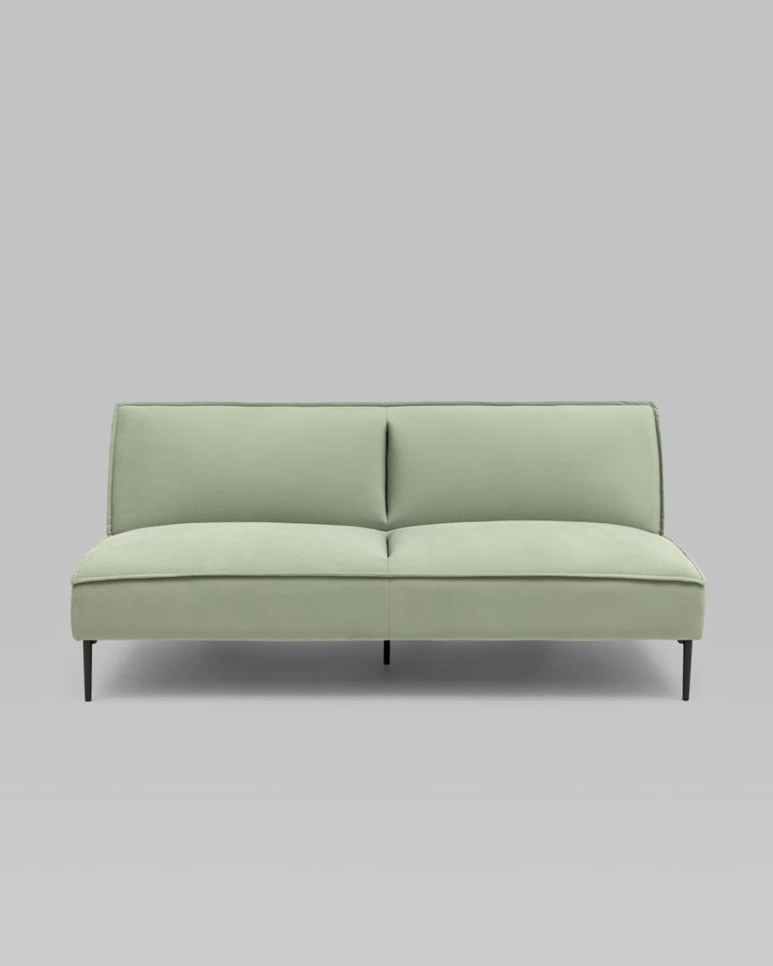 Диван прямой с подлокотниками Кассель велюр светло-салатовый раскладной ножки венге металл
