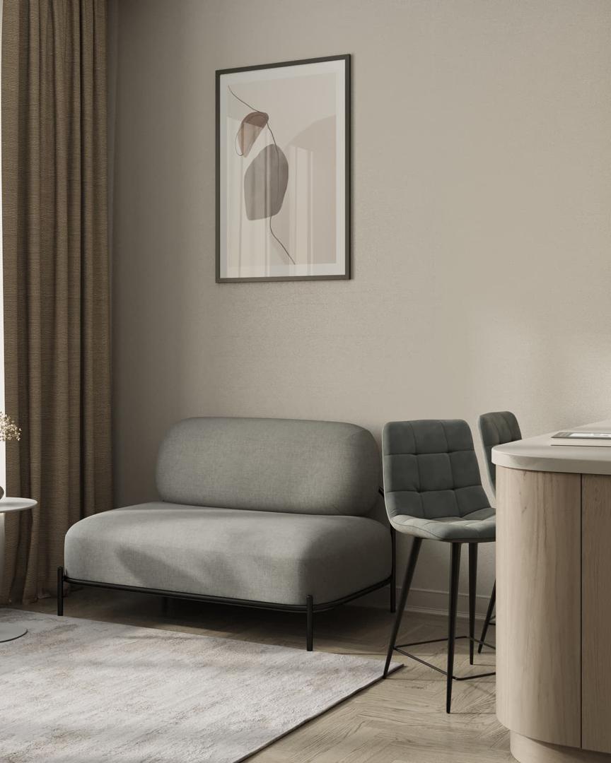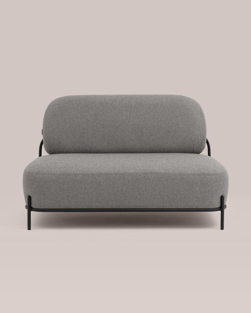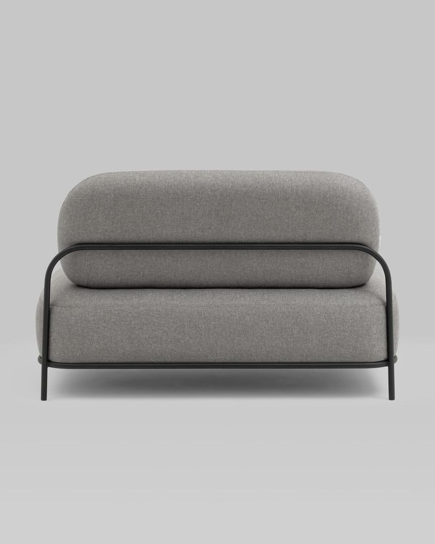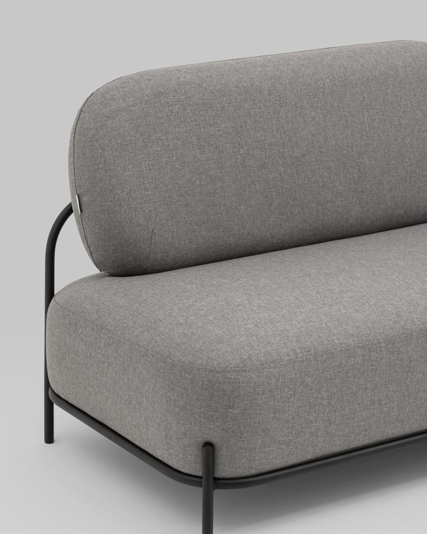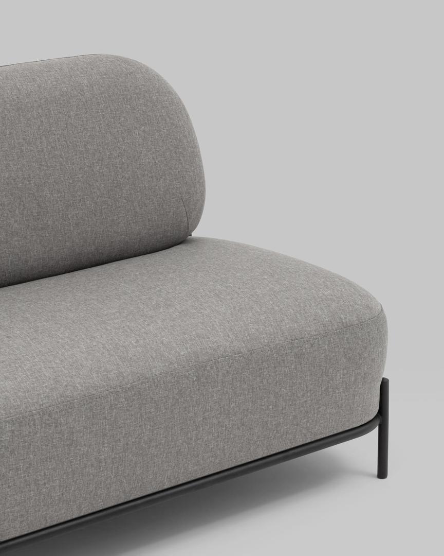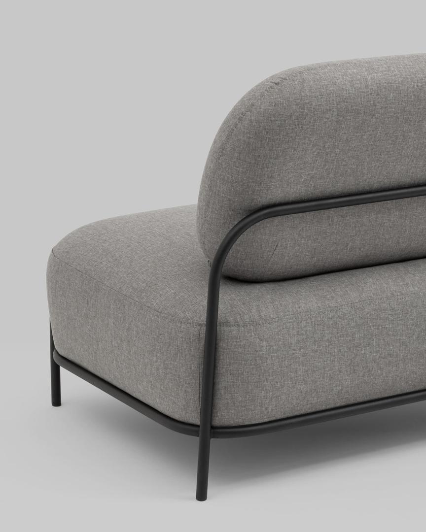 Диван без подлокотников Стоун рогожка серый, ножки черные, металл