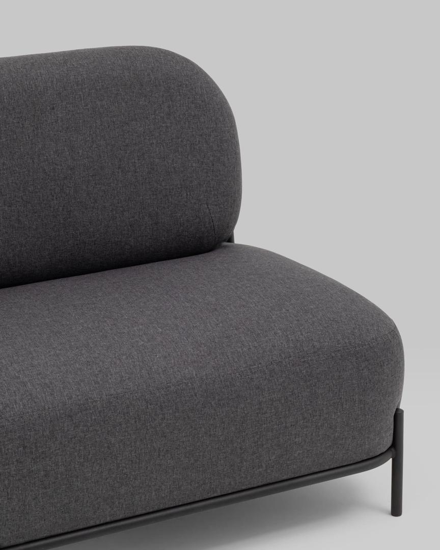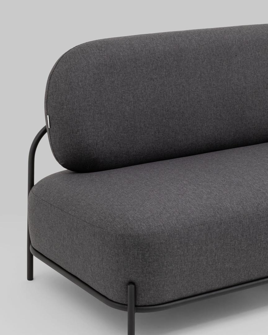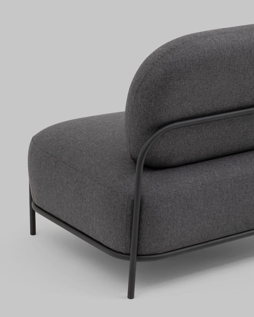 Диван без подлокотников Стоун рогожка тёмно-серый, ножки черные, металл