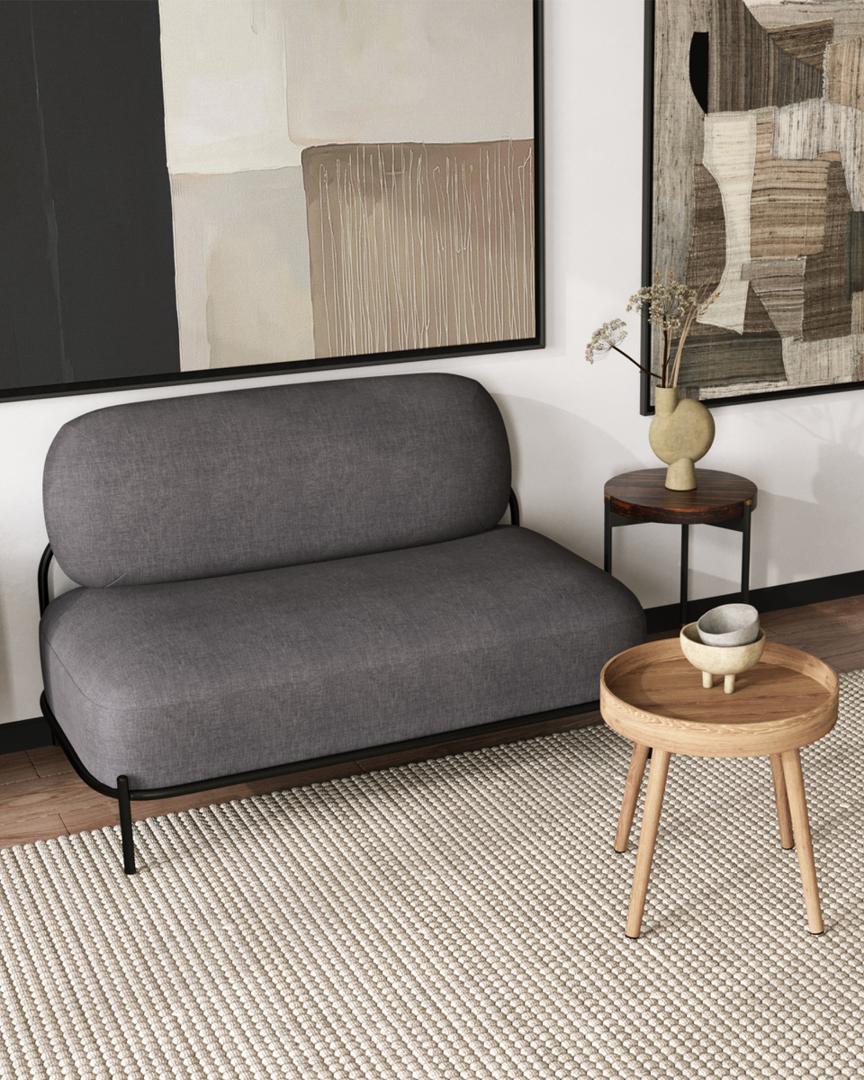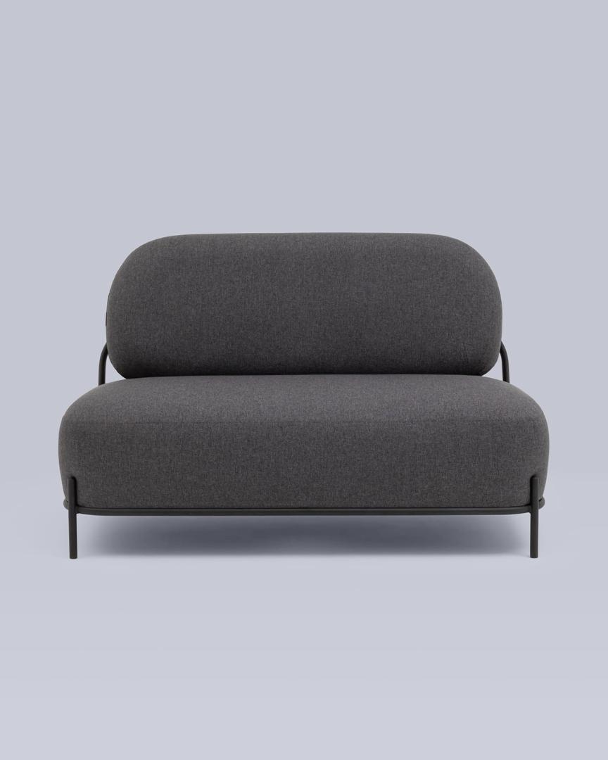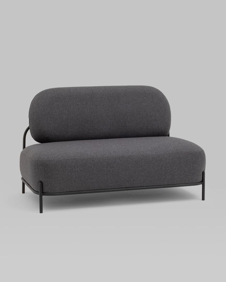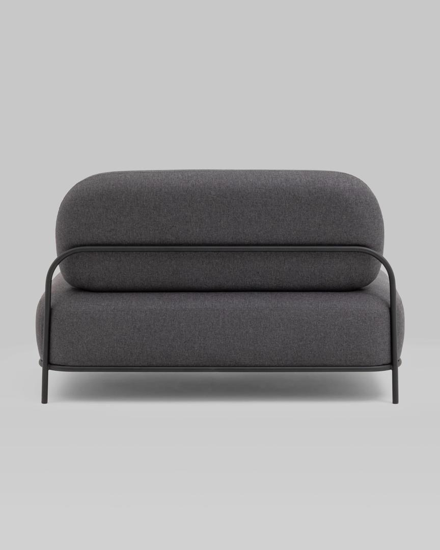 Диван без подлокотников Стоун рогожка тёмно-серый, ножки черные, металл