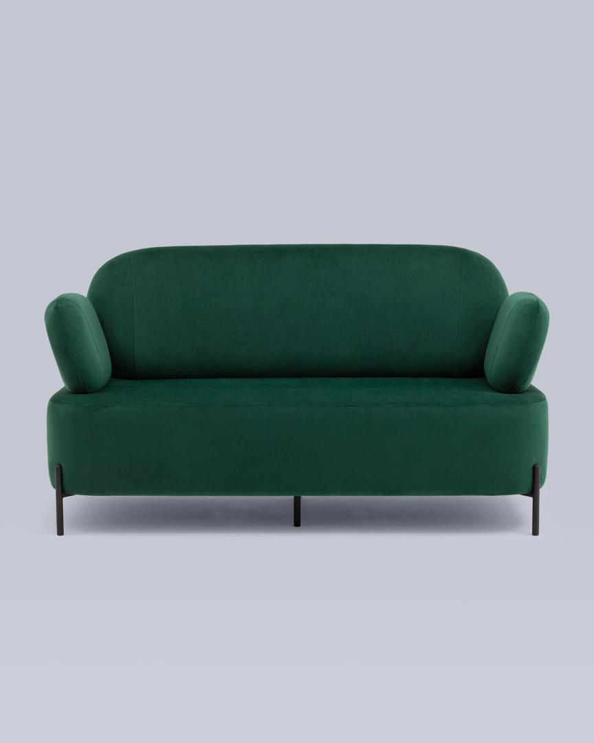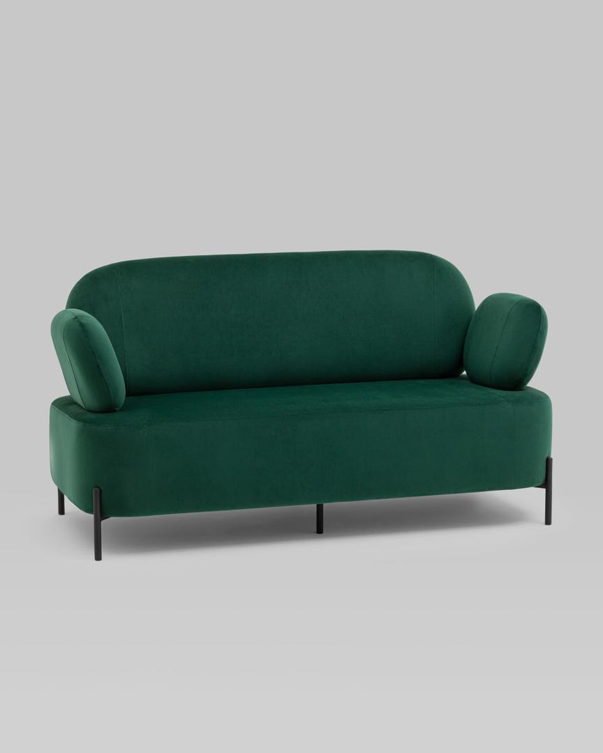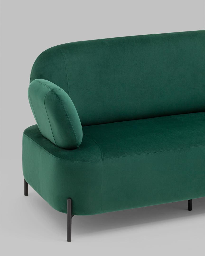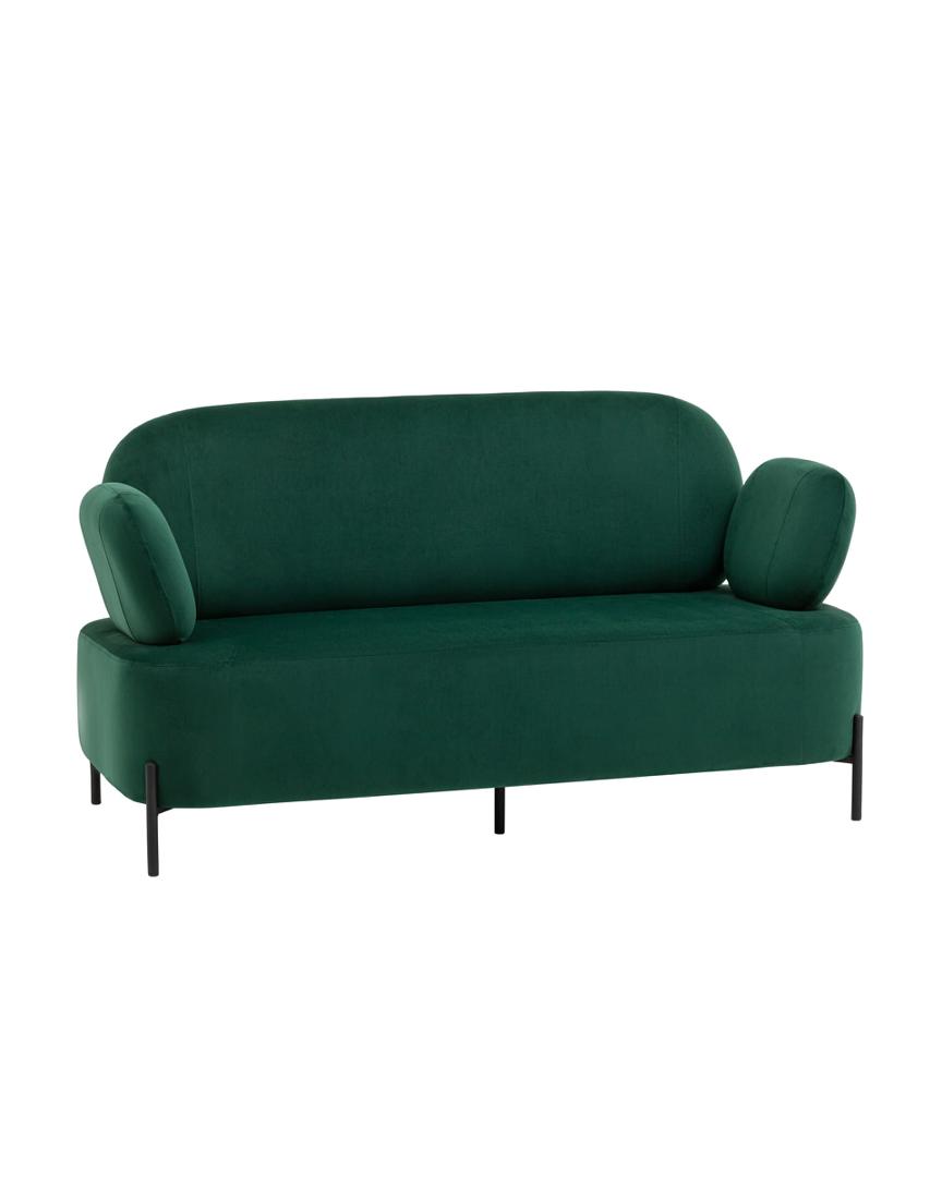 Диван с подлокотниками Кэнди велюр зелёный, ножки черные, металл