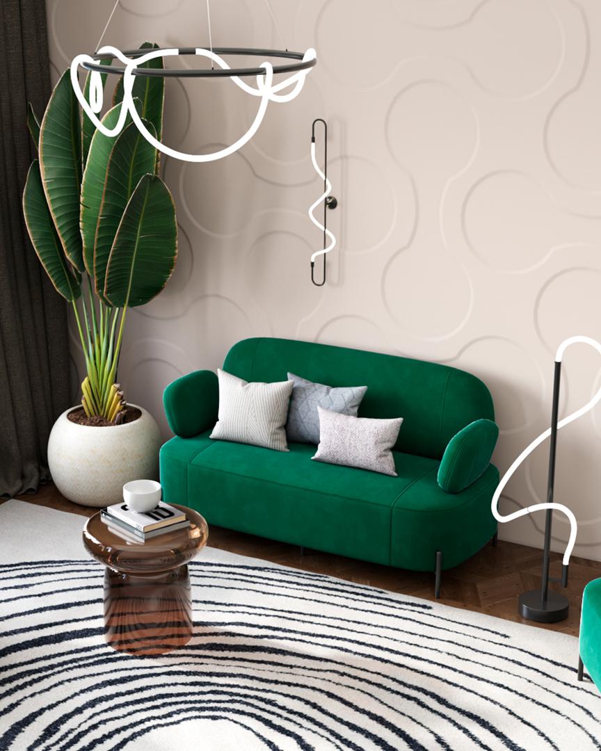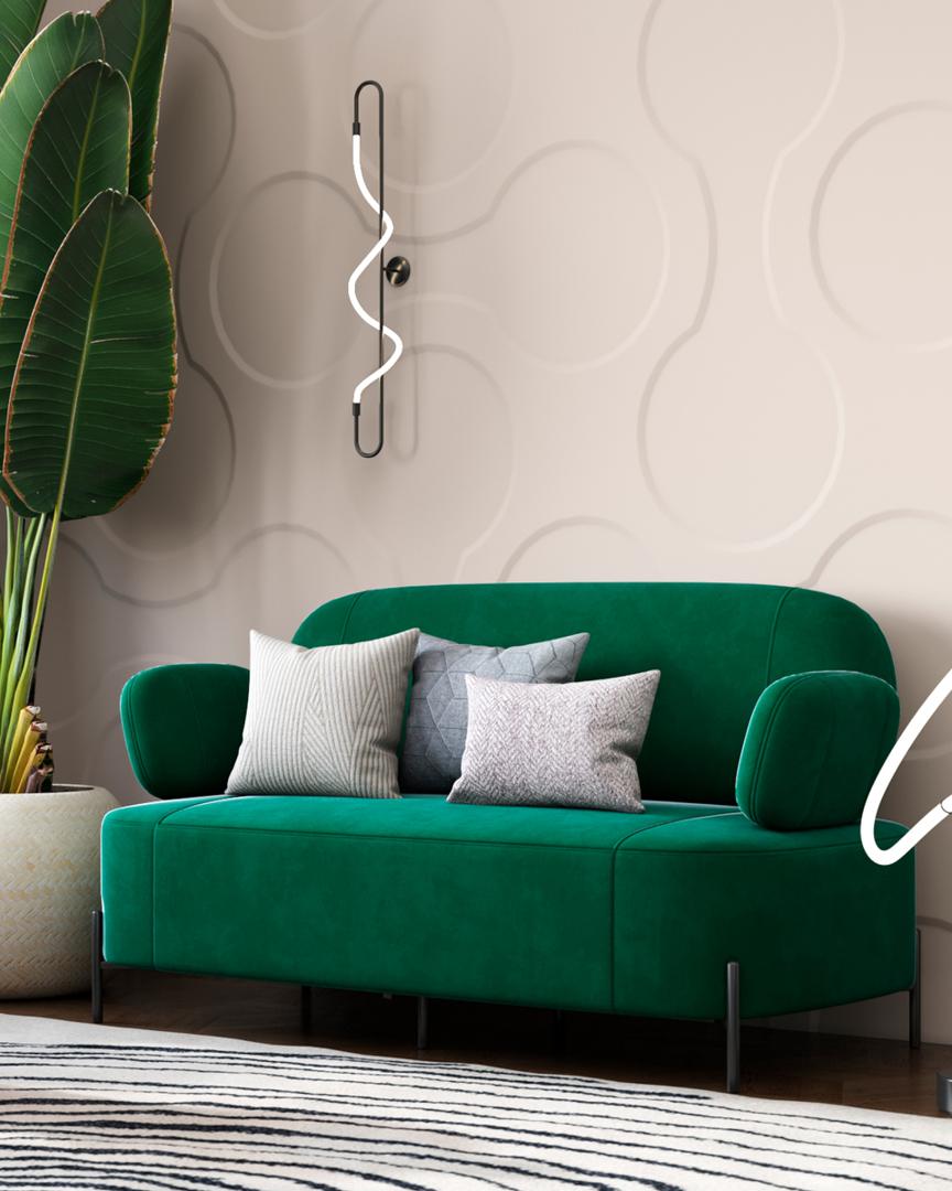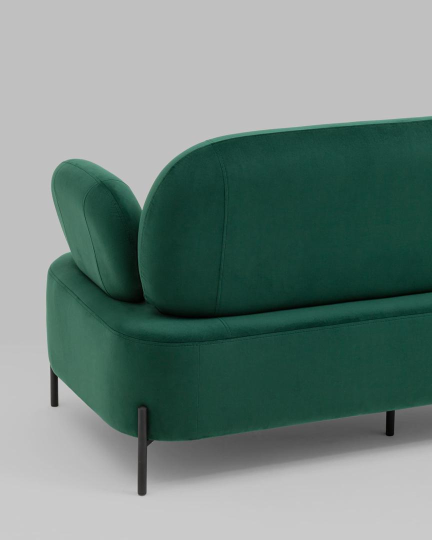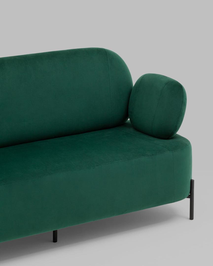 Диван с подлокотниками Кэнди велюр зелёный, ножки черные, металл