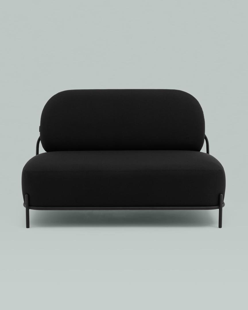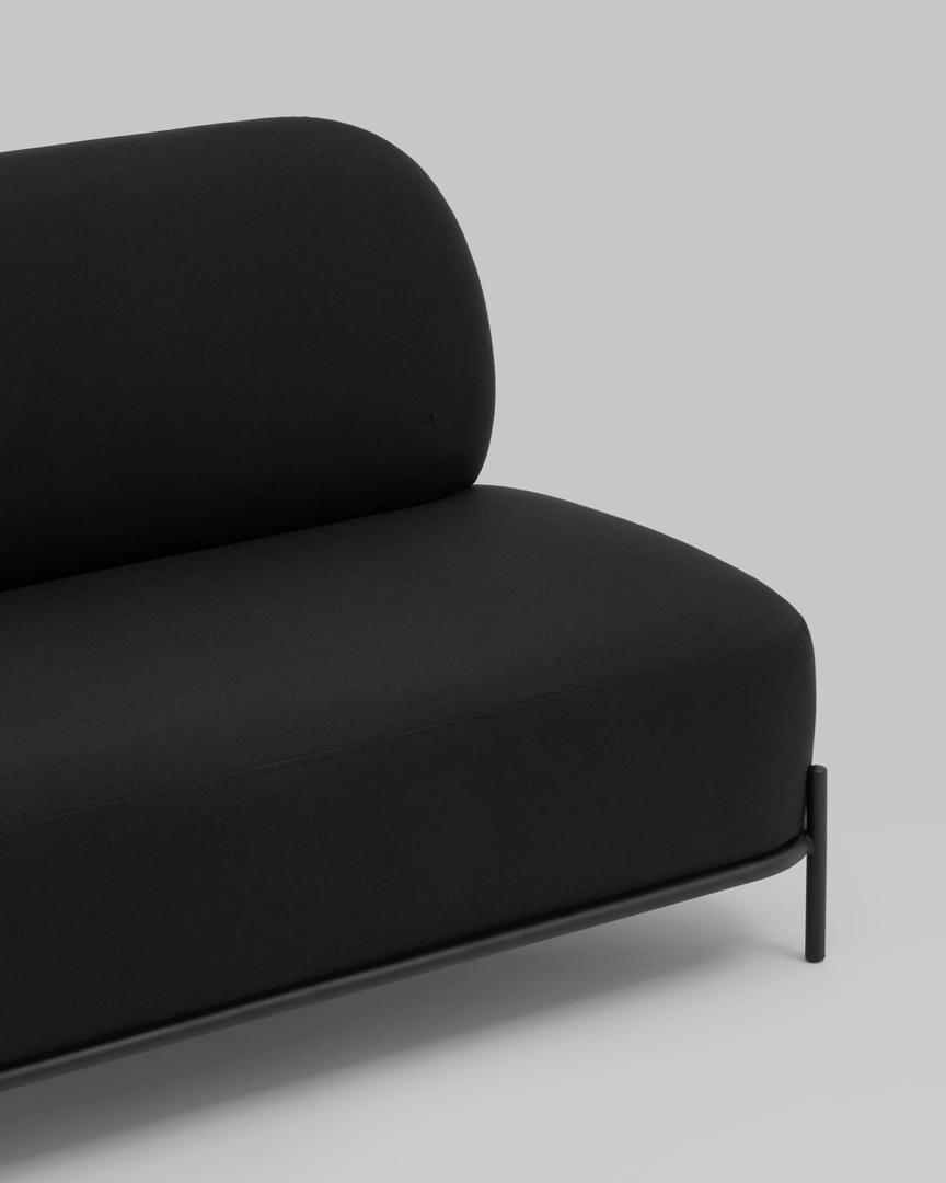 Диван без подлокотников Стоун рогожка черный, ножки черные, металл