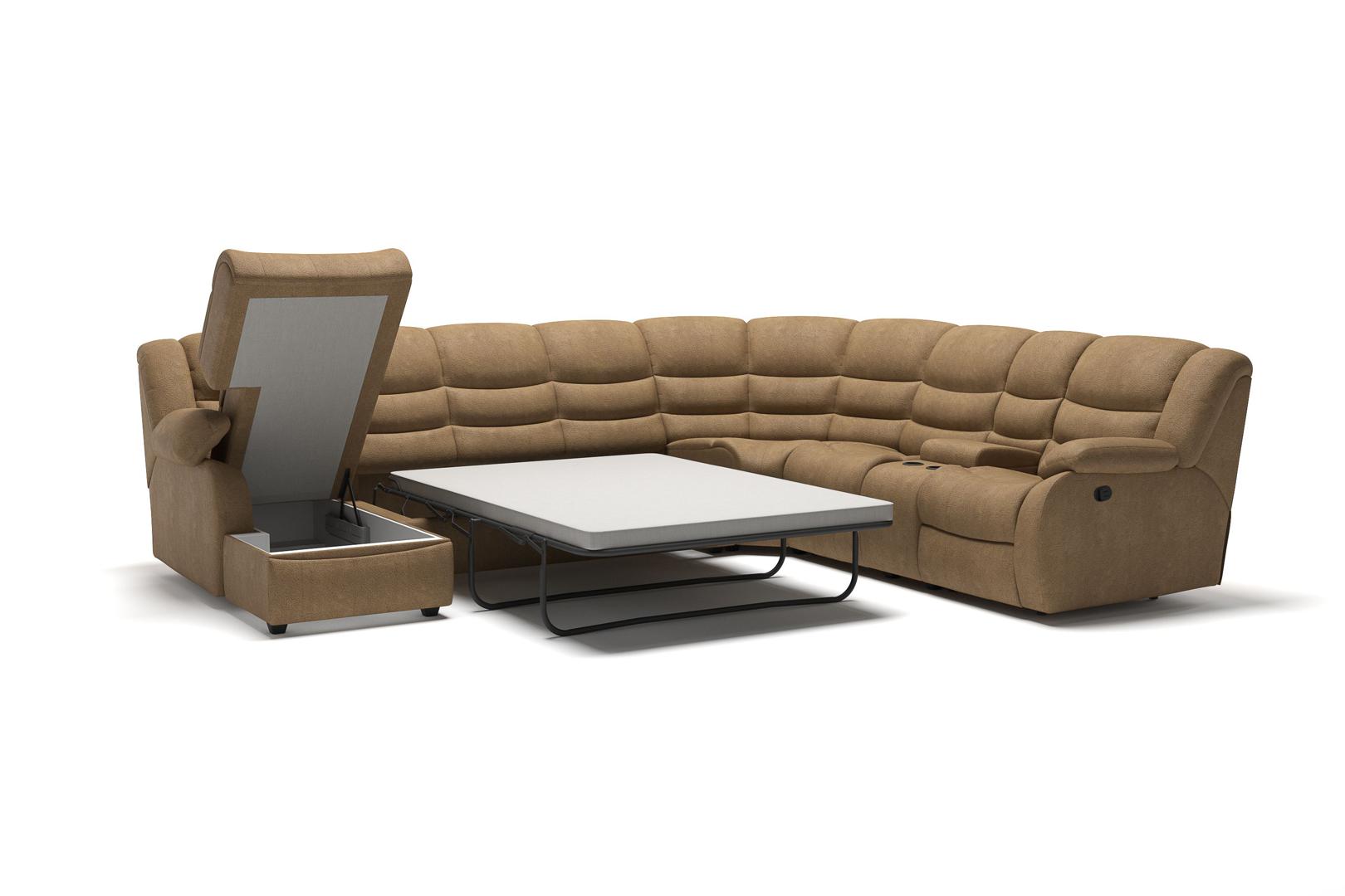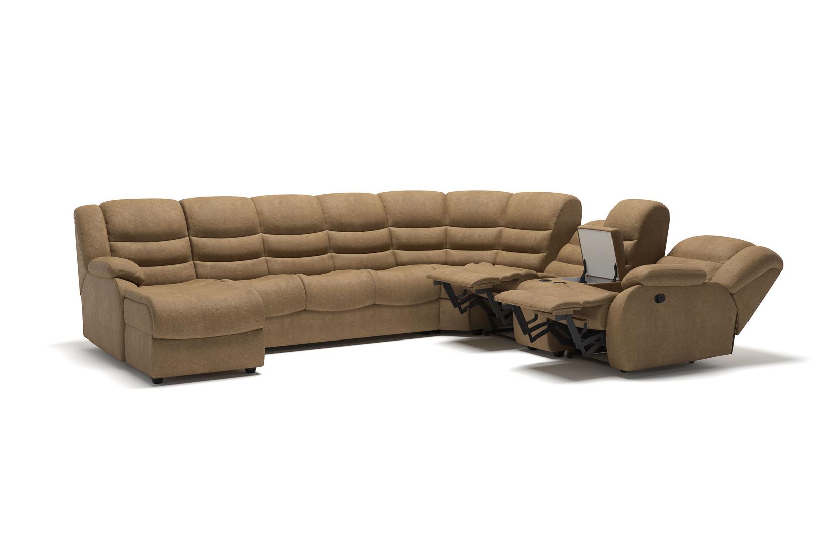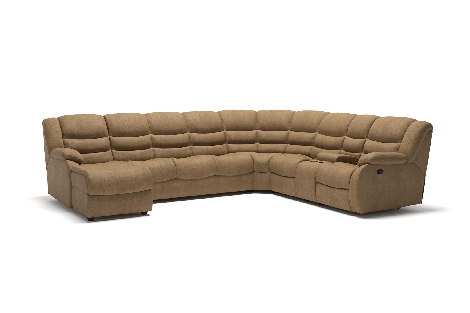 Диван Top concept Ridberg диван-кровать угловой с шезлонгом, двумя реклайнерами и баром, замша бежевый арт. 6424