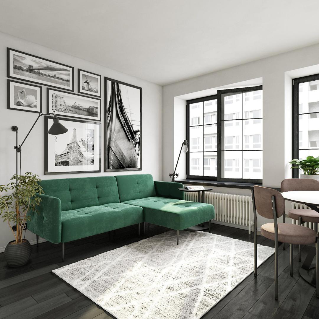 Диван Top concept Monaco диван-кровать с шезлонгом, с подлокотниками, бархат зеленый 19 арт. 0000004180000000036180
