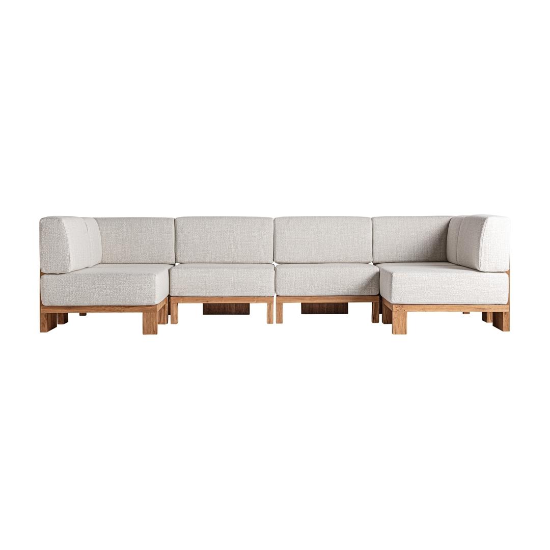 Модульный диван Testa натурального коричнево-бежевого цвета в колониальном стиле. Изготовлен из переработанного тикового дерева в сочетании с переработанным полипропиленом и пеной. Изделие съемное, чехол съемный.