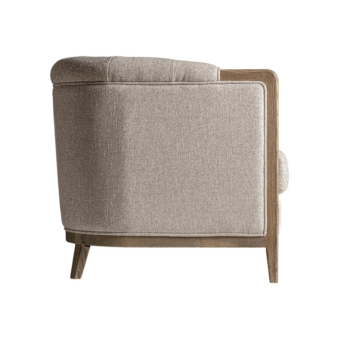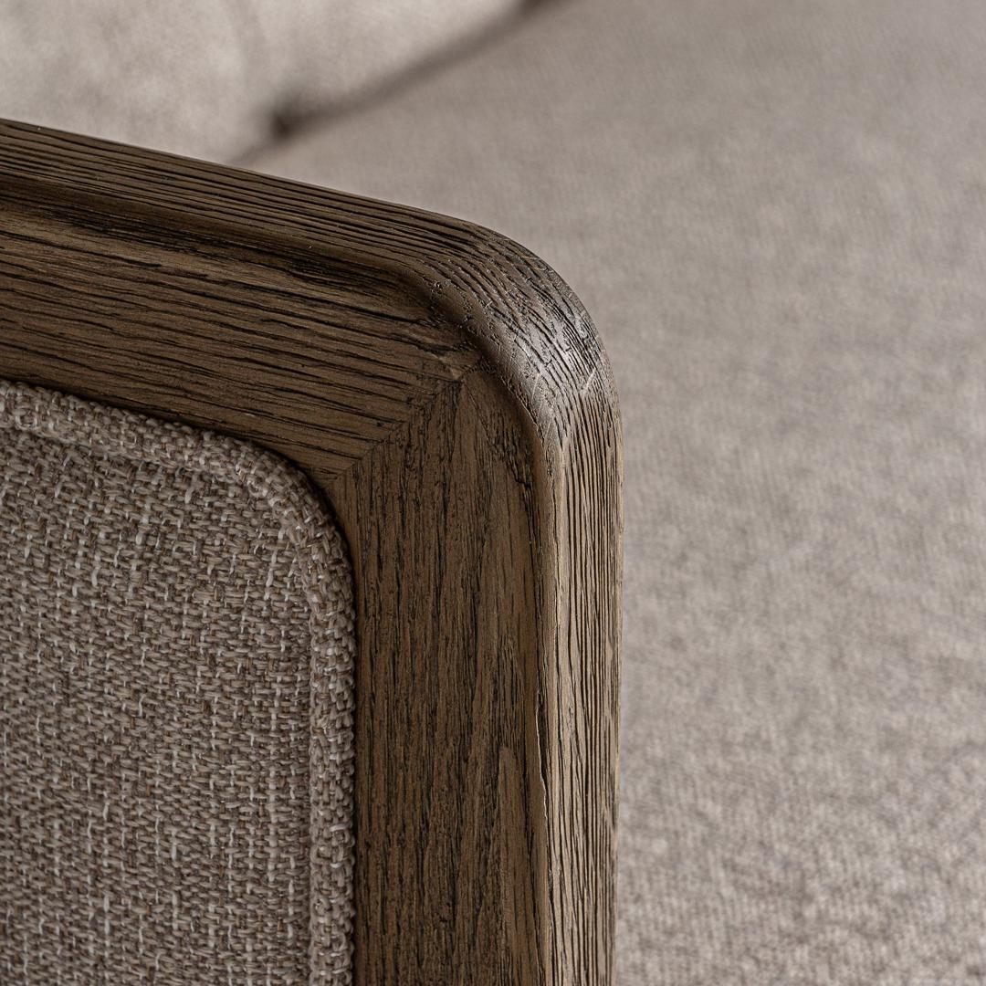 Диван Silz в колониальном стиле, изготовлен из бежевого ясеня в сочетании с полиэстером. Съемное изделие.