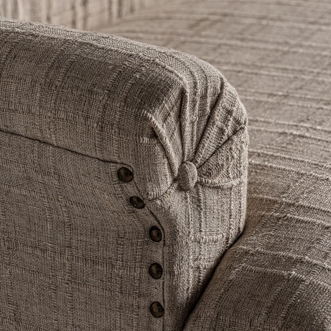 Барный диван Hestroff, бежевого цвета, в классическом стиле. Изготовлен из древесины манго в сочетании с полиэстером и пеной.