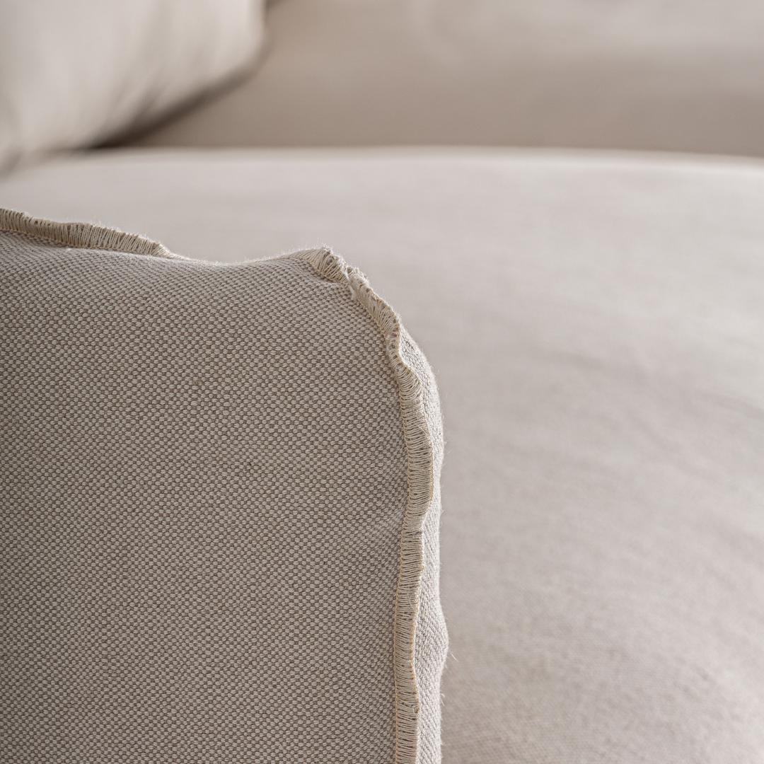 Диван из бежевого полиэстера в сочетании с деревом. Ширина: 216 см, Глубина: 94 см, Высота: 93 см