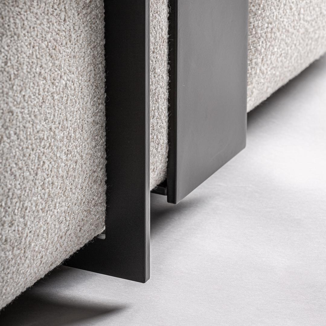 Угловой диван-модуль Wingles в современном стиле, изготовлен из бежевой лиственницы с пестрой отделкой в сочетании с полиэстером и поролоном кремового цвета. Черные железные ножки. Подушки наполнены смешанным гусиным пером. . Совместимо с: 36091,36092.