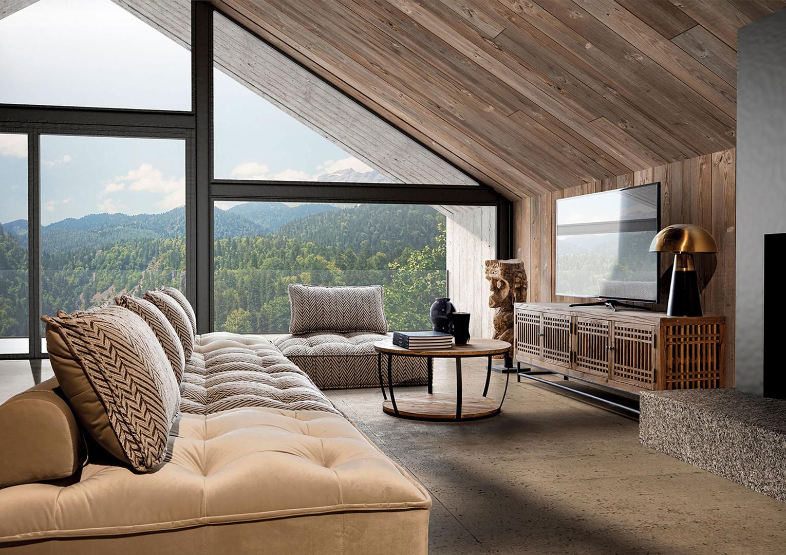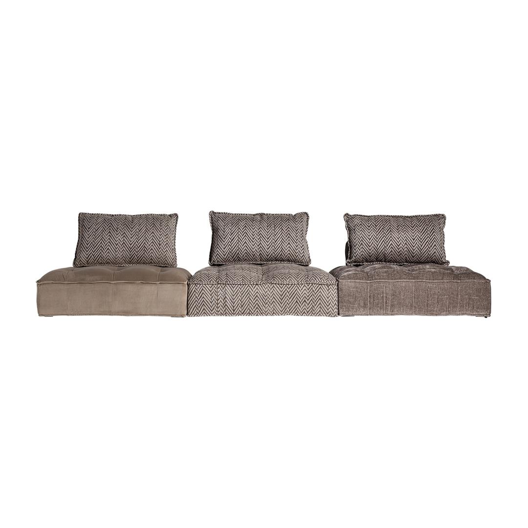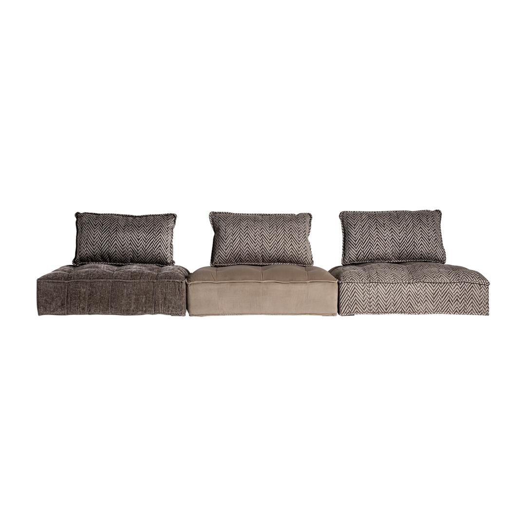 Модульный диван Encs, коричнево-бежевого цвета с принтом, современный стиль. Изготовлен из полиэстера в сочетании с бархатом и льном. Изделие съемное, чехол съемный. Совместим с: 27368.