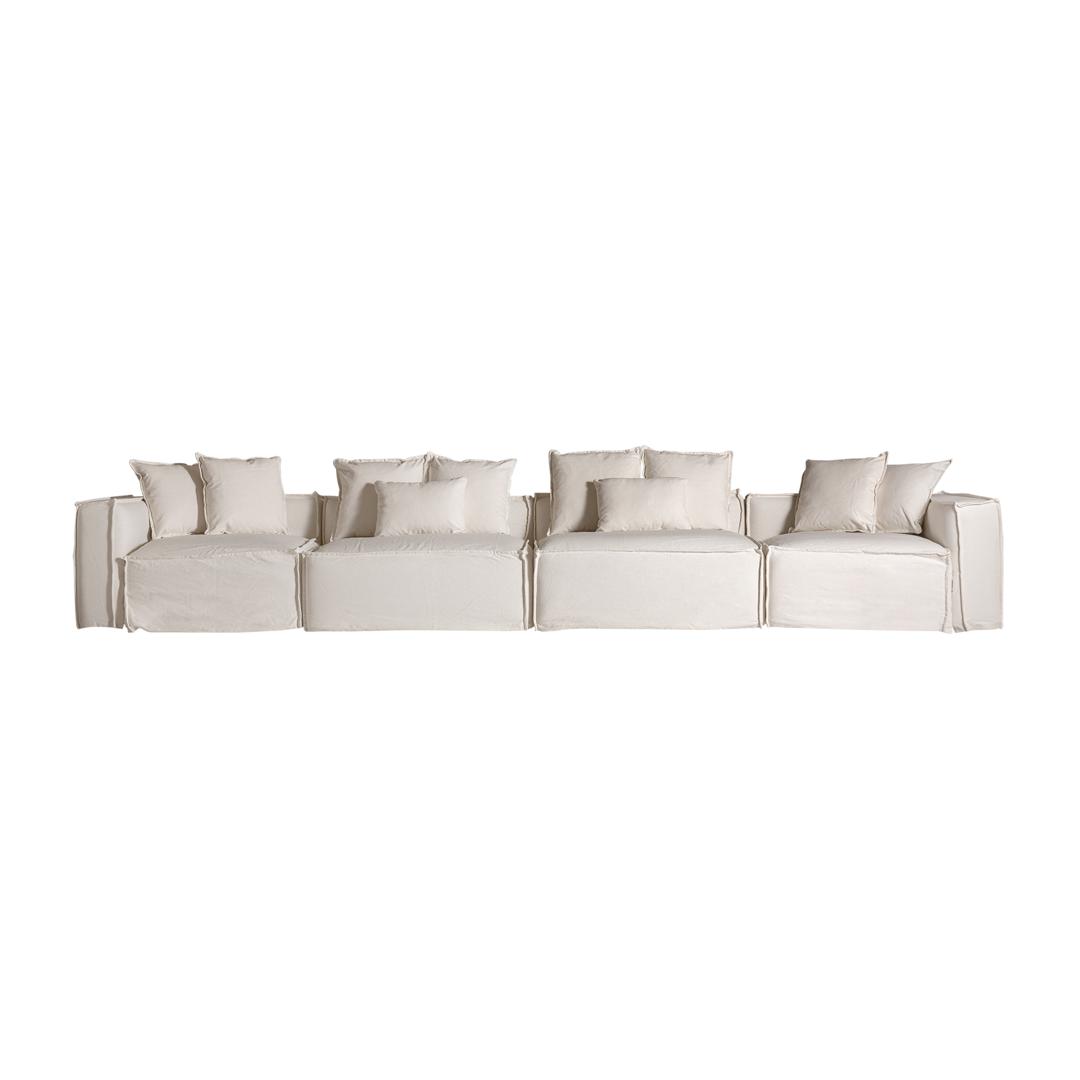 Модульный диван Virolle белого цвета в стиле арт-деко. Изготовлен из льна в сочетании с хлопком и поролоном. Съемное изделие.
