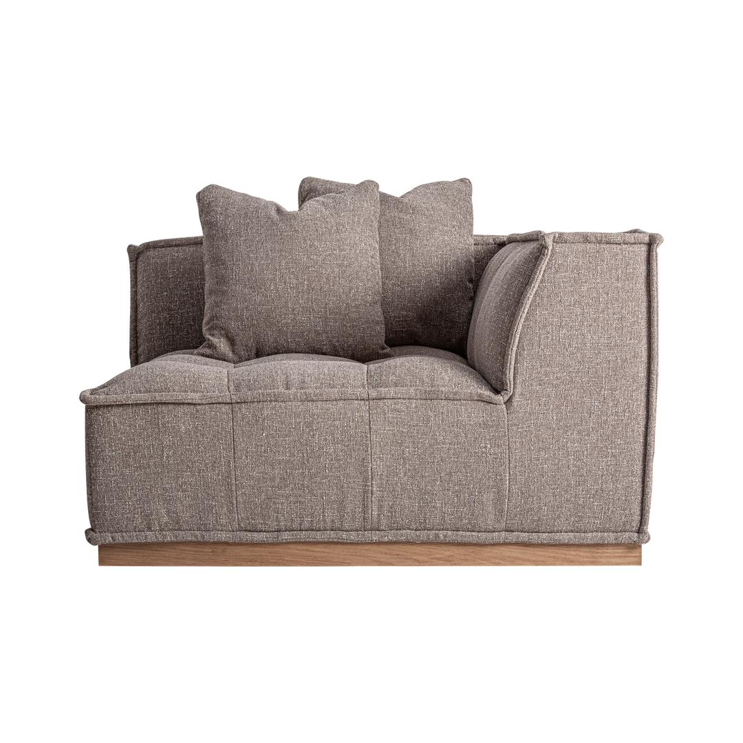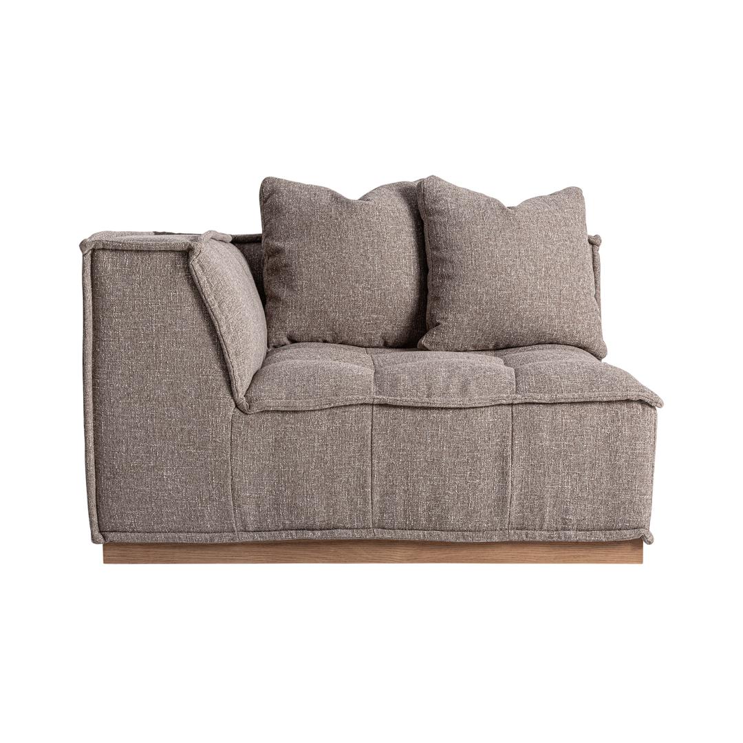 Угловой модульный диван Aspach в современном стиле, изготовлен из коричневого полиэстера с пестрой отделкой в сочетании с коричневой сосной. Ширина: 124 см, Глубина: 124 см, Высота: 88 см