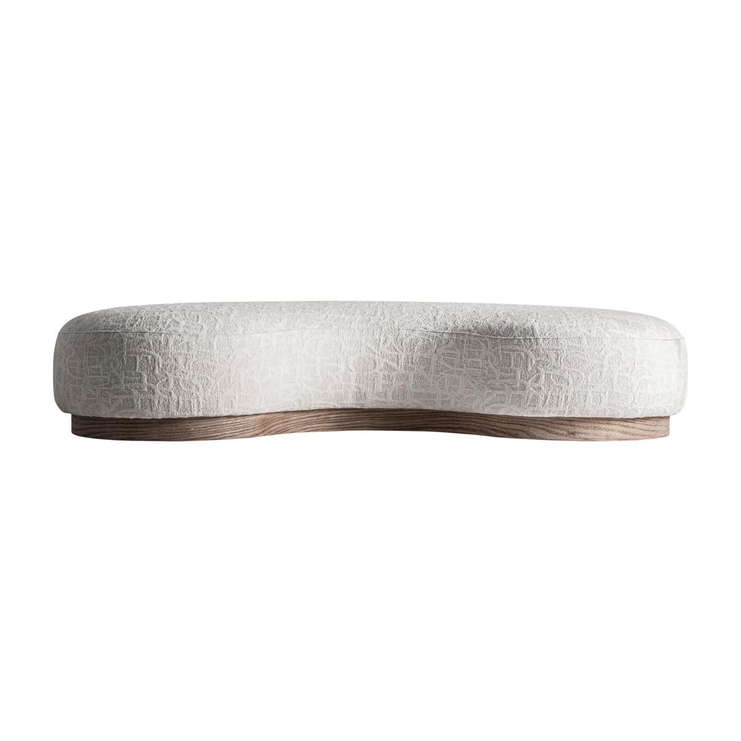 Диван, изготовленный из полиэстера кремового цвета в сочетании с коричневым поролоном и каучуковым деревом. Ширина: 190 см, Глубина: 85 см, Высота: 38 см