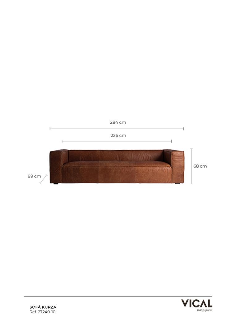 Ощутите непревзойденную роскошь с диваном Kurza от VICAL, воплощением исключительного мастерства и продуманного дизайна. Просторный диван из натуральной коровьей кожи классического коричневого цвета, размером 280x98x68 см, обеспечит непревзойденный комфорт. Каркас из еловой древесины и наполнитель из высокоплотного пенополиуретана гарантируют поддержку и долговечность, а его величественный и вневременной стиль сделает его центральным элементом любой комнаты. Диван Kurza — это больше, чем просто сиденье; это обещание незабываемых моментов в сердце вашего дома. Ширина: 280 см, Глубина: 98 см, Высота: 69 см