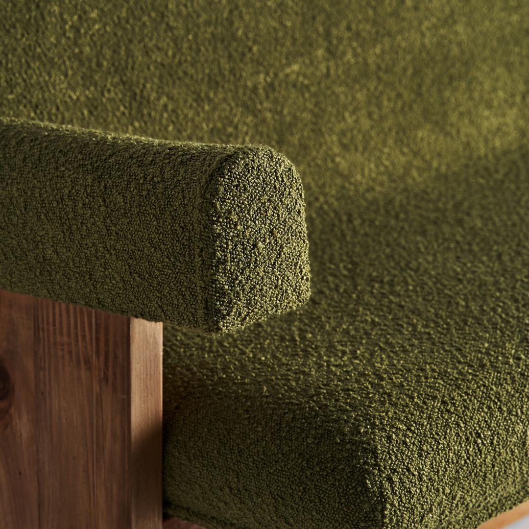 Диван Creusot с каркасом из переработанной сосны и зеленой полиэстеровой обивкой переосмысливает стиль ар-деко с учетом принципов устойчивого развития. Его строгие линии и мягкая текстура делают его уютным и элегантным предметом интерьера. Дизайн разработан компанией VICAL. Ширина: 159 см, Глубина: 85 см, Высота: 85 см