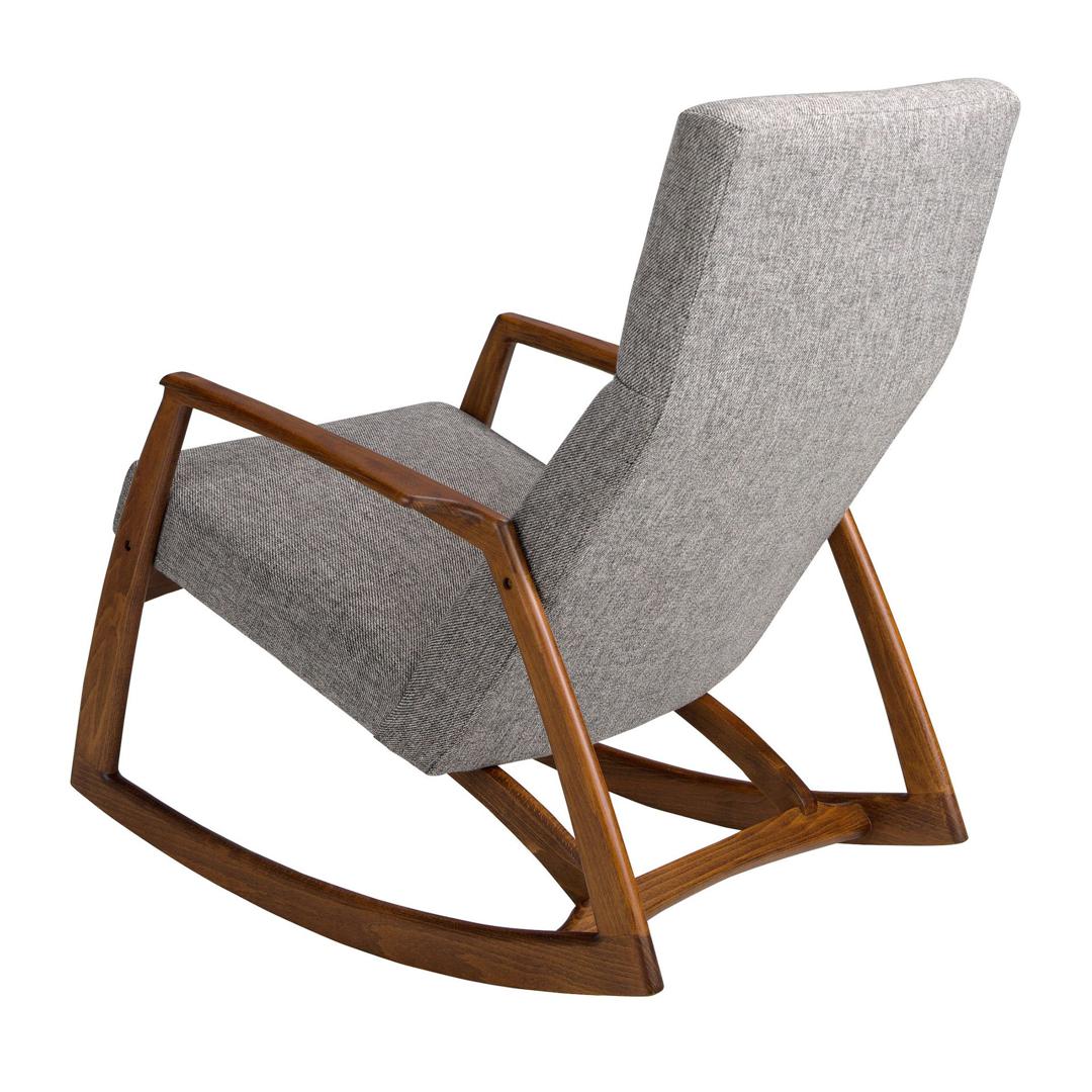 Кресло-качалка с подлокотниками современного дизайна, обитыми серой тканью. Кресло-качалка в авангардном, но неподвластном времени стиле, со структурой и ножками из дерева орехового цвета, которое станет обязательным атрибутом в вашей столовой. Ткань - TS-SW.Gris03.