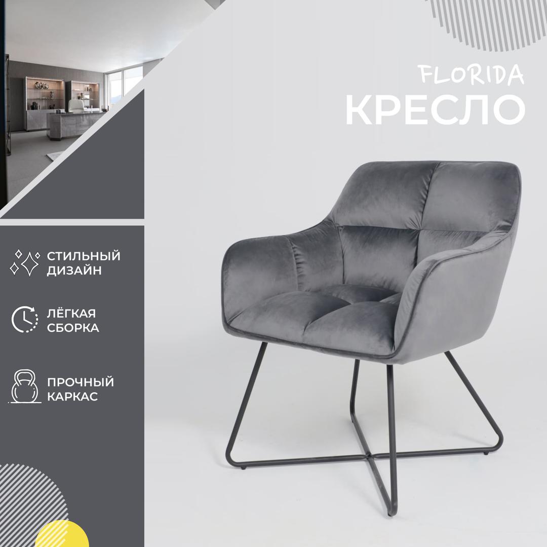 Кресло AksHome Кресло Florida, темно-серый, велюр арт. ZN-126696