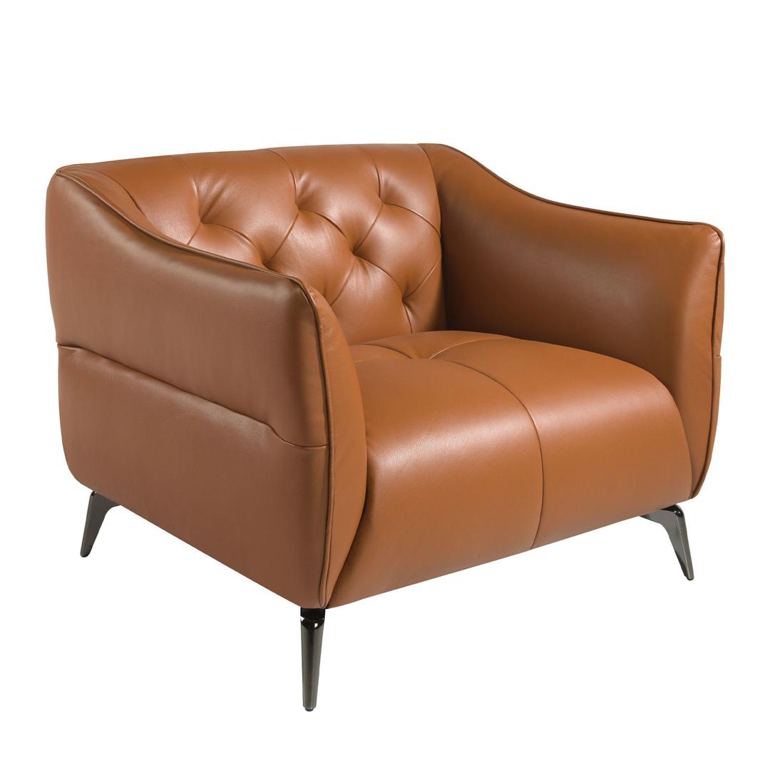 Кресло с обивкой из воловьей кожи со стеганой спинкой. Структура ножек из прочной затемненной нержавеющей стали. Кожа - Marrón Caramelo M5676.