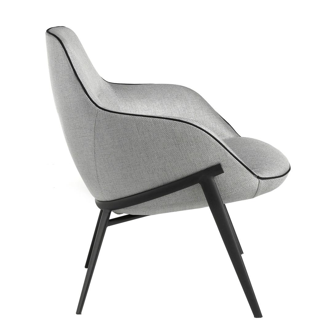 Кресло A146 от Angel Cerda — стильный предмет интерьера для современной городской квартиры. Эта модель привлечет каждого, кто стремится во всем идти в ногу со временем. Кресло выглядит очень современно, в полной мере соответствуя самым свежим тенденциям европейского модерна. Здесь всего в меру и, в то же время, не скучно: традиционный серый, надежная стойка из стали, эргономичное сиденье с яркой окантовкой. Кресло состоит из двух элементов: цельного сиденья и металлической опоры. Сиденье имеет обтекаемую форму, где спинка переходит в слабо выраженные подлокотники, которые плавно опускаются вниз к подушке. С внутренней стороны спинка имеет анатомическую форму — в середине есть выпуклость для правильного расположения поясничной области. Материал обивки — прочный текстиль серого цвета. По краю проходит окантовка черного цвета. Металлическая стойка представляет собой дугообразную металлическую конструкцию, от которой отходит четыре ножки. Она покрыта черной порошковой краской. Размеры кресла: 67 см × 84 см × 76см (ширина, высота, глубина). Требуется сборка (стойка приходит отдельно). Крепеж входит в комплектацию. Ткань - Similar Duo 52.