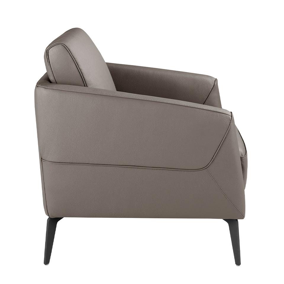 Кресло 5134/KF-A051-M9019 от фабрики Angel Cerda – элегантный вид и стильные треугольные ножки. Кресло 5134/KF-A051-M9019 – это идеальное сочетание стиля и комфорта. Натуральная кожа премиального качества выделена декоративной отделкой. Ножки заострены к низу, чем демонстрируют свое изящество. Массивные подушки говорят о комфорте. Безусловно, эта модель кресла идеальная для вашей гостиной! Кресло имеет каркасную основу из прочной сосновой древесины. Каркас щедро обернут наполнителем и обшит натуральной кожей серо-бежевого цвета. Внешняя сторона подлокотников выделена декоративными нахлестами, что делает поверхность более фактурной. Сиденье дополнено двумя подушками, которые при желании можно убрать. Ножки металлические, окрашены в черный цвет матовой порошковой краской. Для защиты напольного покрытия от повреждения, на них установлены пластиковые накладки. А для повышения устойчивости ножки расставлены под углом от центра сиденья. Размеры: ширина – 78 см, высота – 82 см, глубина – 80 см. Вес: 18 кг. Кресло предназначено только для эксплуатации в помещении. Сборка не требуется.