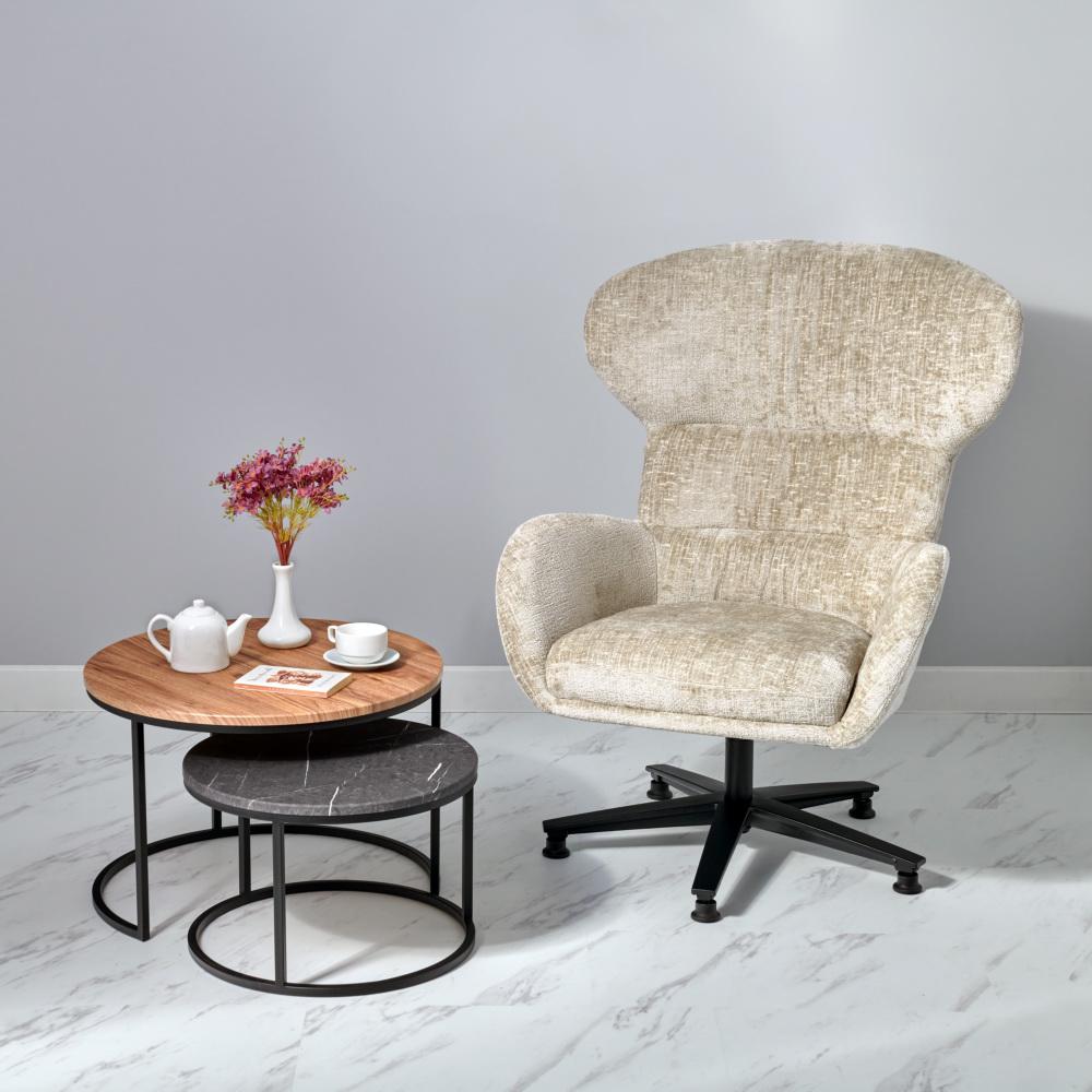 Благодаря прочной и нежной обивочной ткани шенилл, это кресло станет эпицентром вашего комфорта и настоящим украшением гостиной или столовой. Поворотный механизм на 360 позволяет легко менять положение, обеспечивая максимальный комфорт.