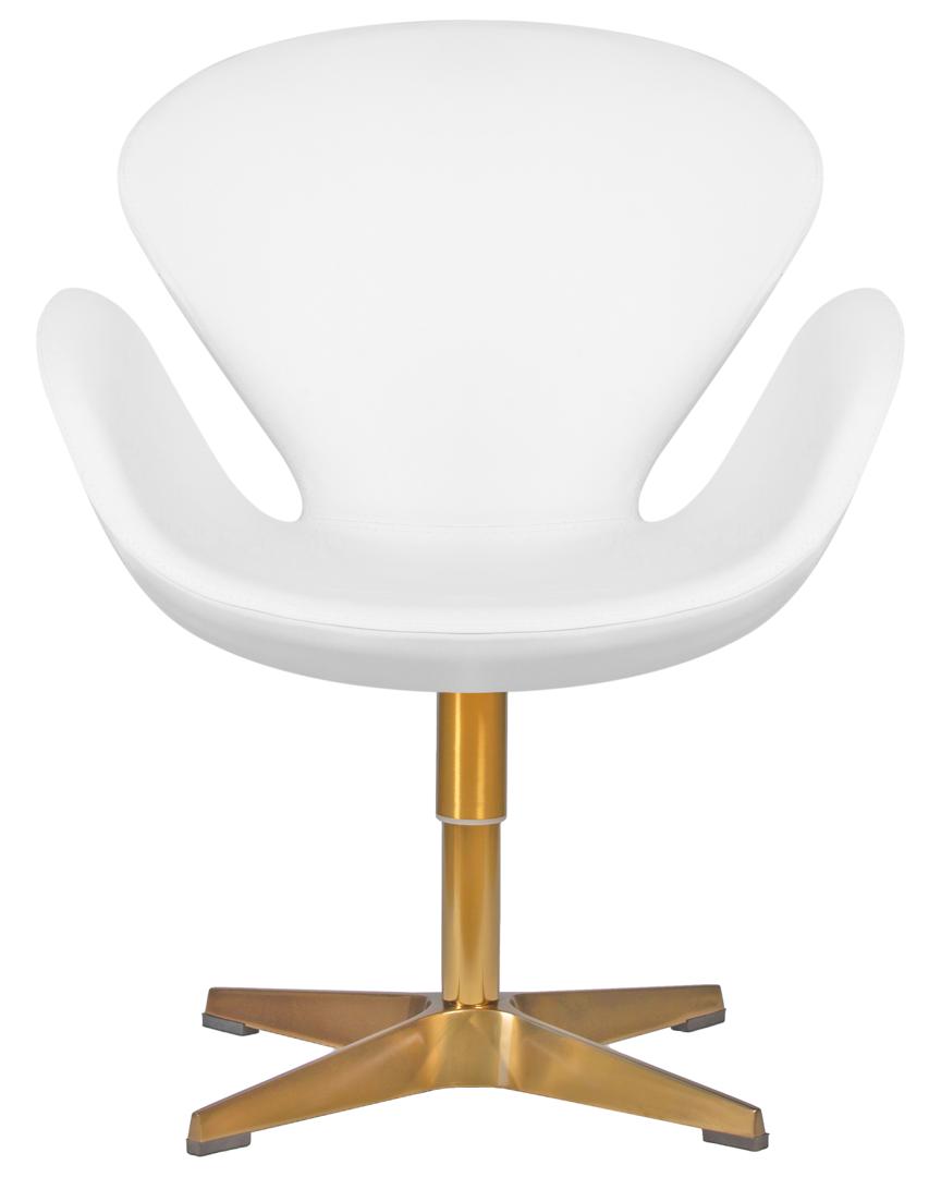Кресло DOBRIN Кресло дизайнерское DOBRIN SWAN, белый кожзам P23, золотое основание арт. LMO-69A_G-M_EL-P23