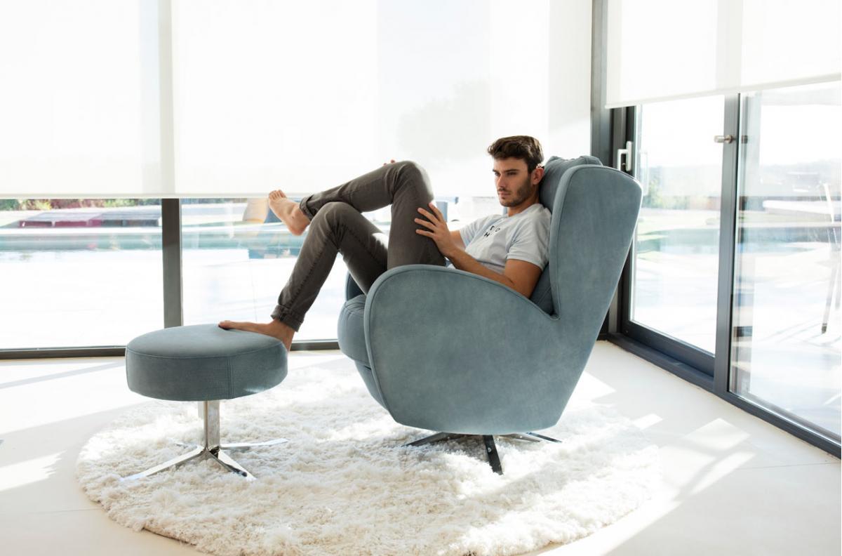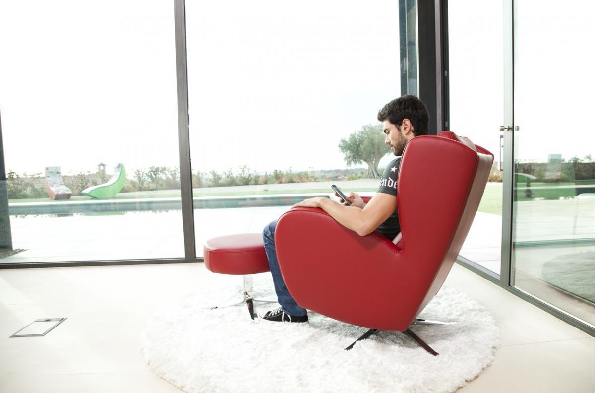 Благодаря привлекательному дизайну изогнутых форм Romeo представляет собой очень удобное кресло большого размера. Он родился от модели Ленни, но с несколько более мужским стилем. Он оснащен хромированным поворотным и качающимся основанием. Идеально сочетается с любой моделью дивана или углового блока.